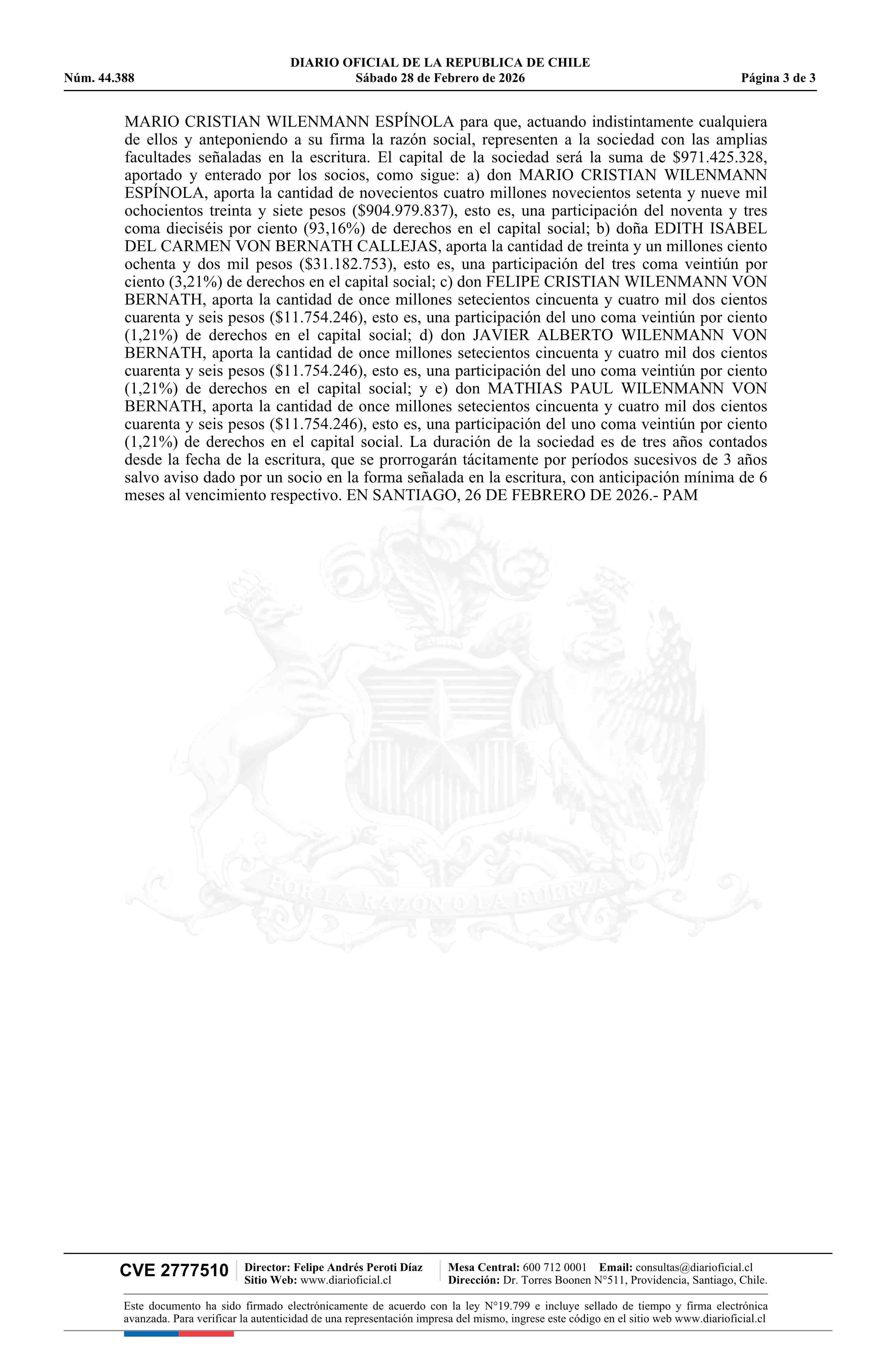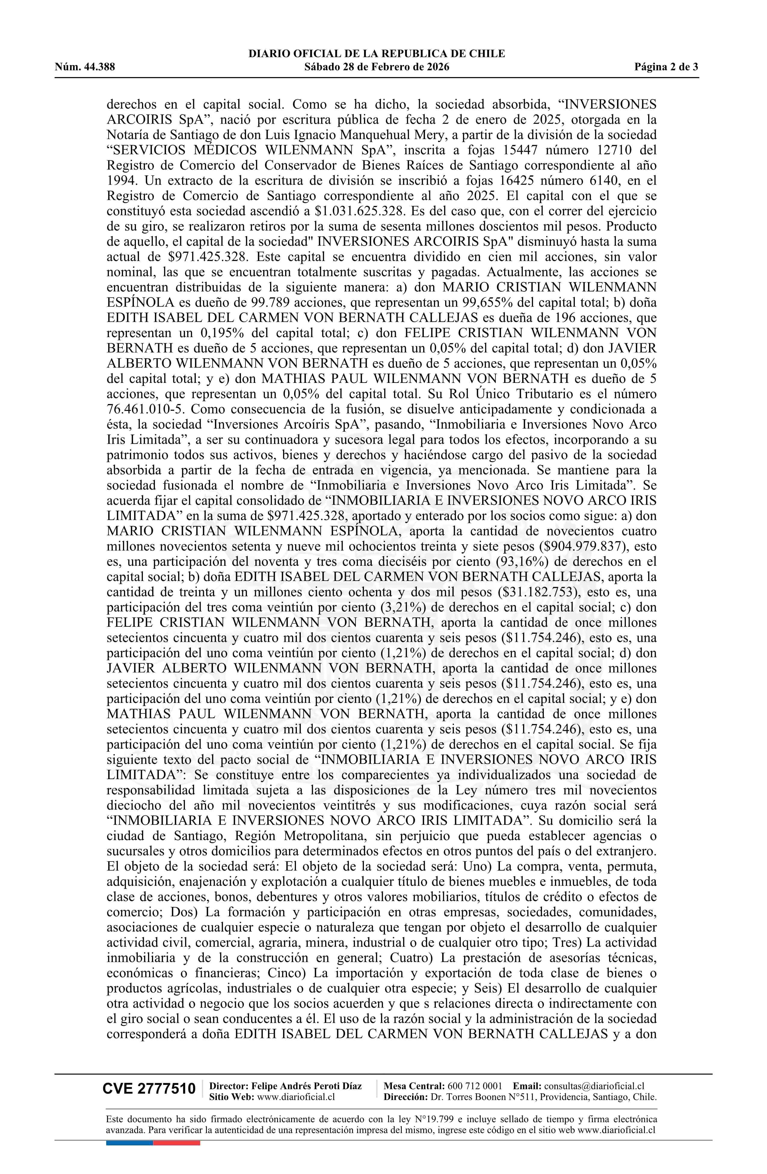 INMOBILIARIA E INVERSIONES NOVO ARCO IRIS LIMITADA 76.461.010-5 28-02-2026 Diario Oficial Edición Electrónica |