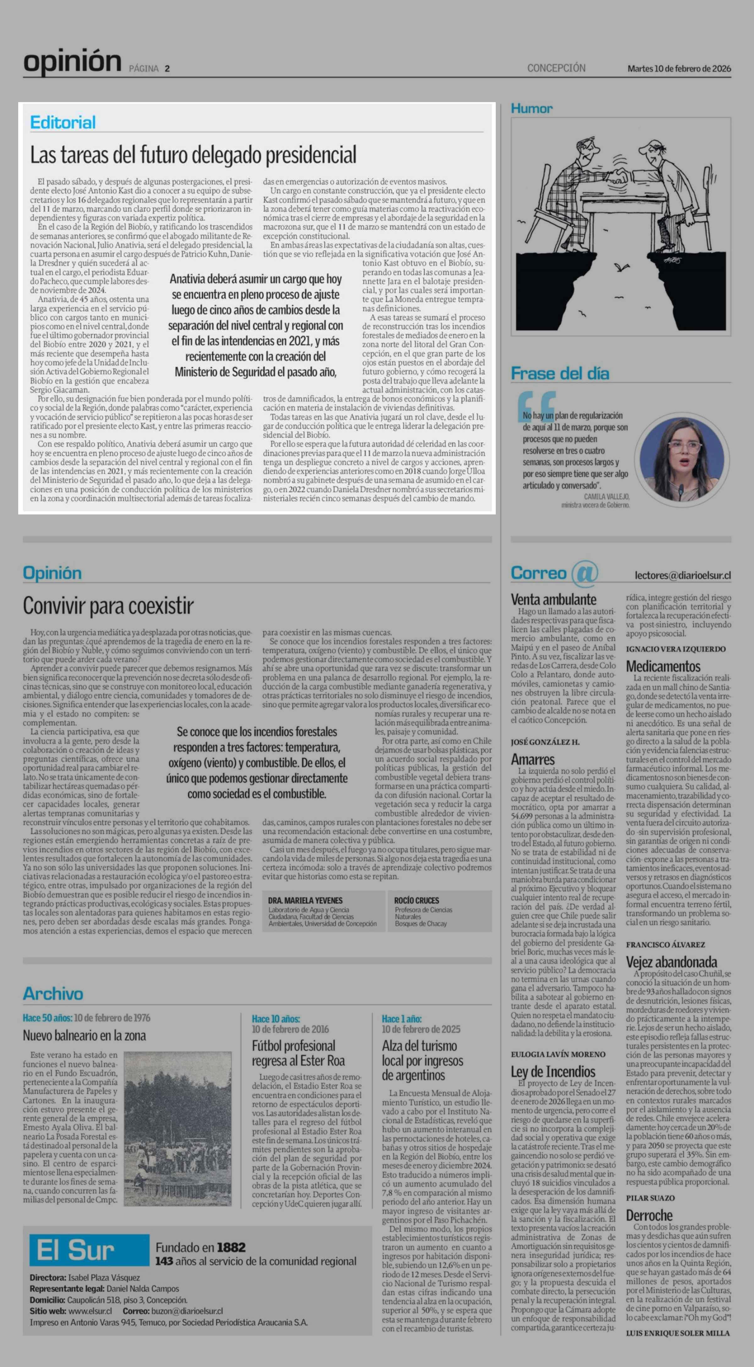 Editorial: Las tareas del futuro delegado presidencial 10-02-2026 El Sur |