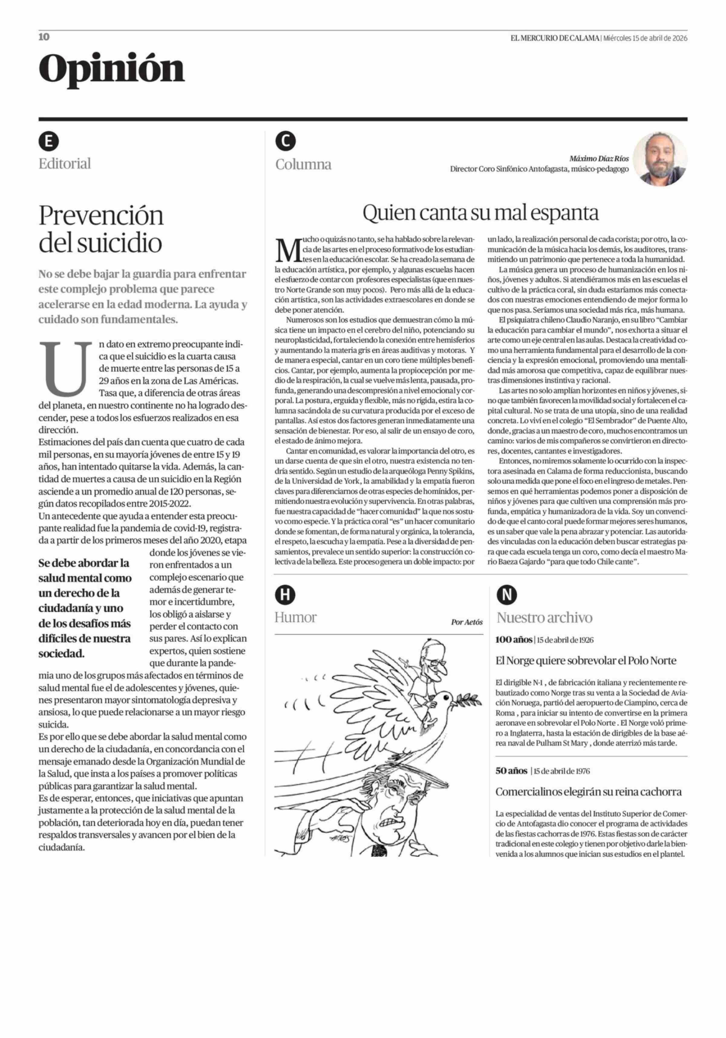 | Fecha: | 15-04-2026 | Sector: | Editorial | Región: | Región de Antofagasta |