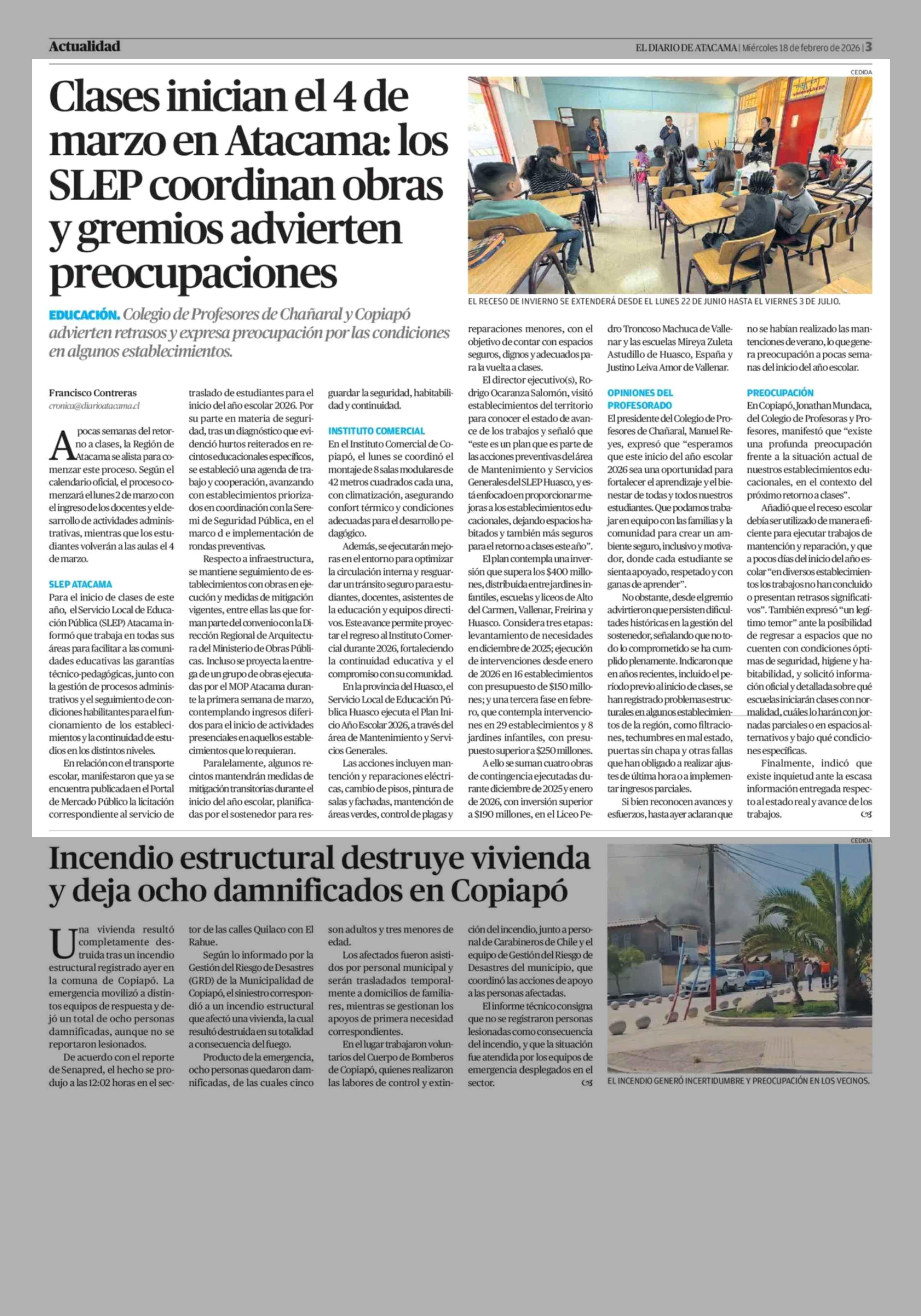 Fecha: 18-02-2026 Sector: Noticia general Región: Región de Atacama