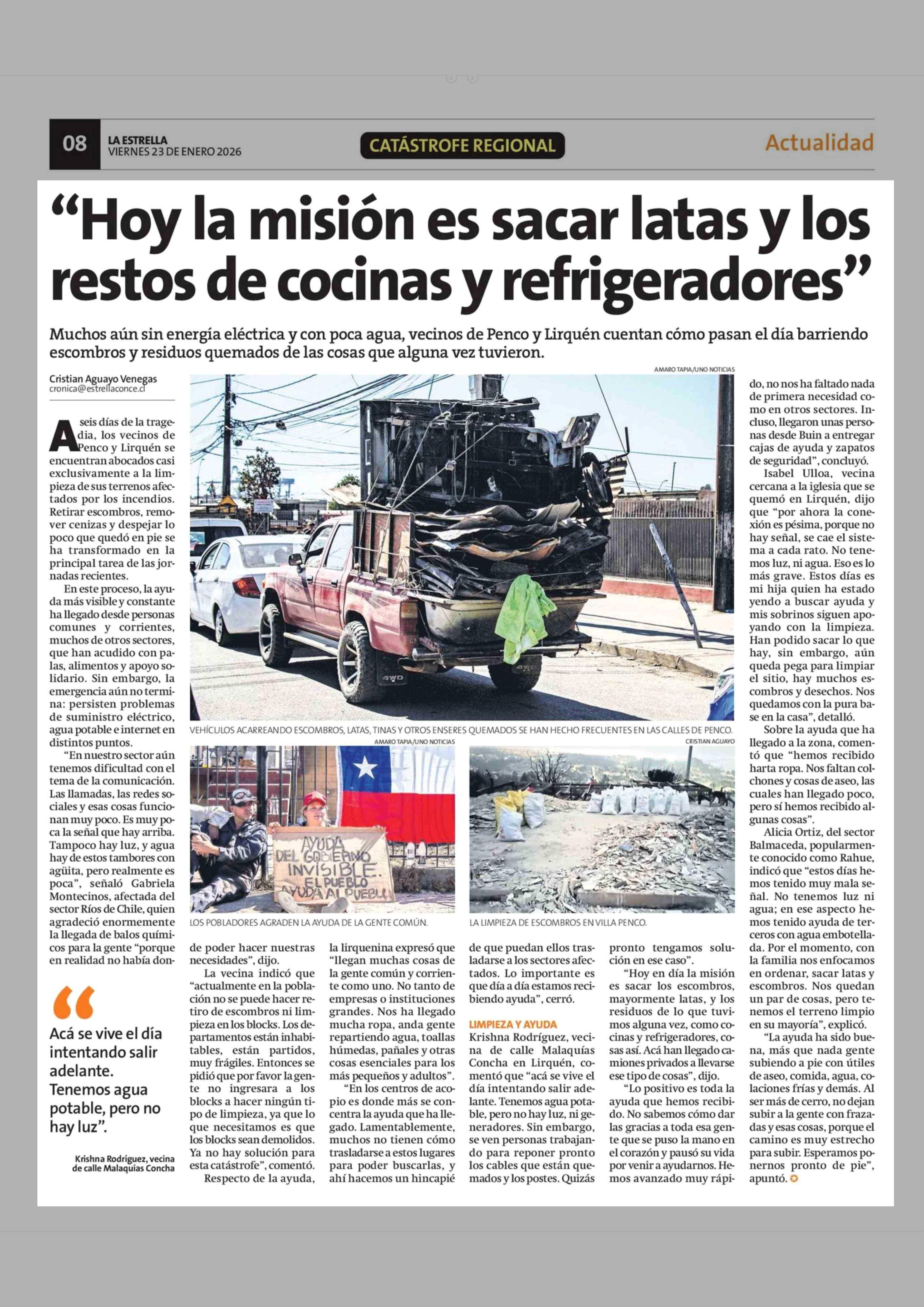 "Hoy la misión es sacar latas y los restos de cocinas y refrigeradores" 23-01-2026 La Estrella de Concepción |