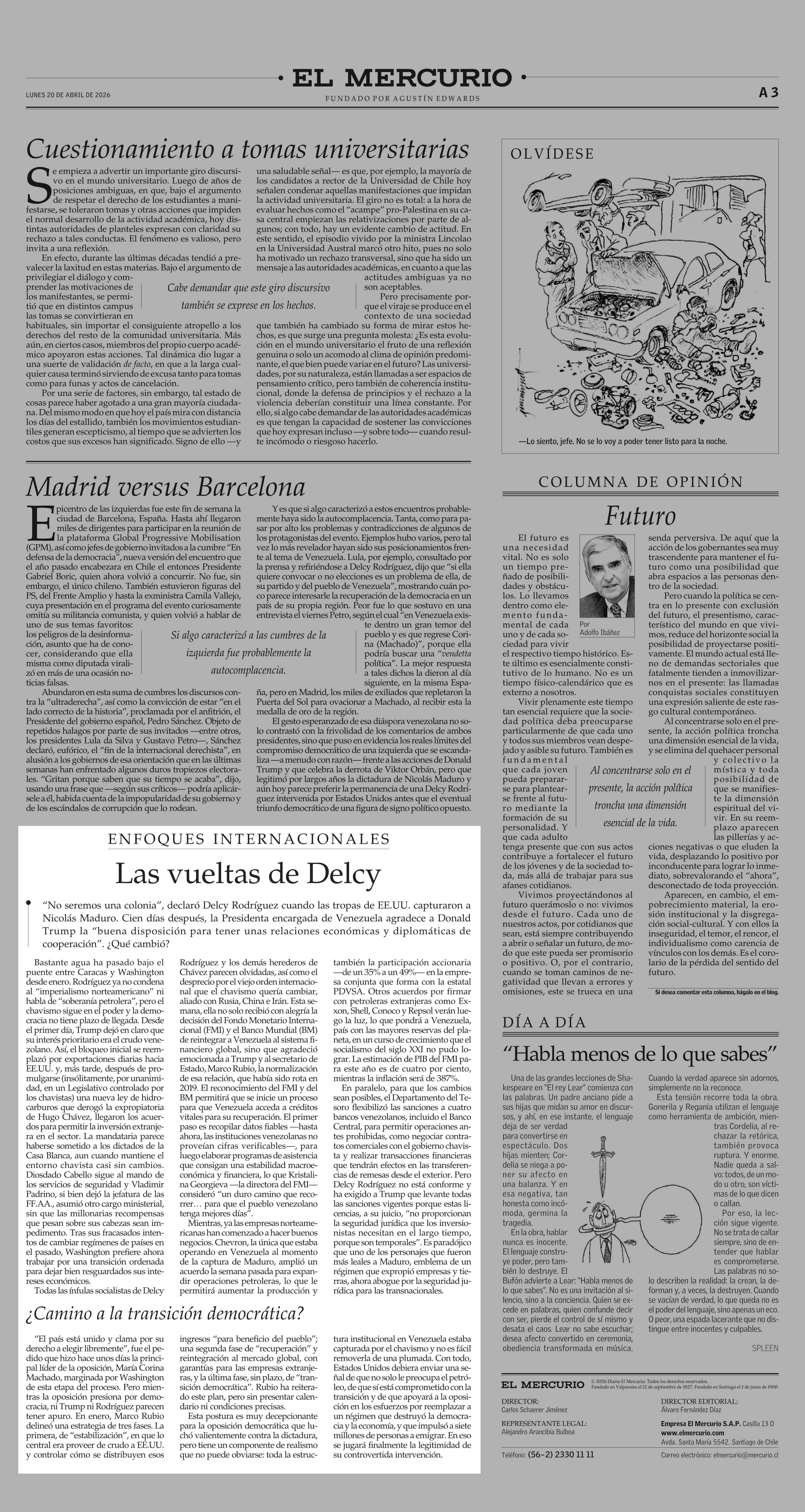 Editorial: Las vueltas de Delcy 20-04-2026 El Mercurio |