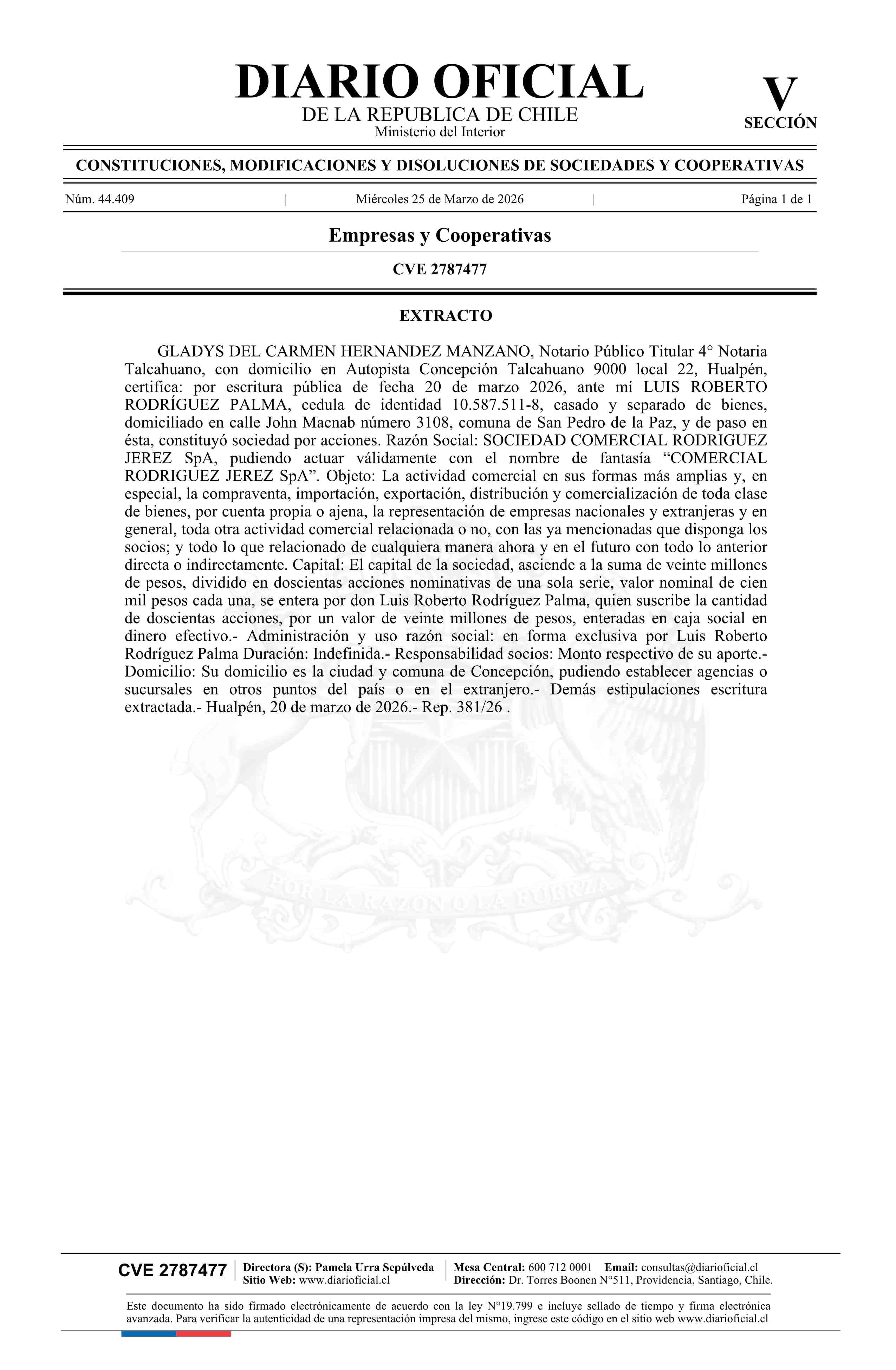 Título: SOCIEDAD COMERCIAL RODRIGUEZ JEREZ SpA
