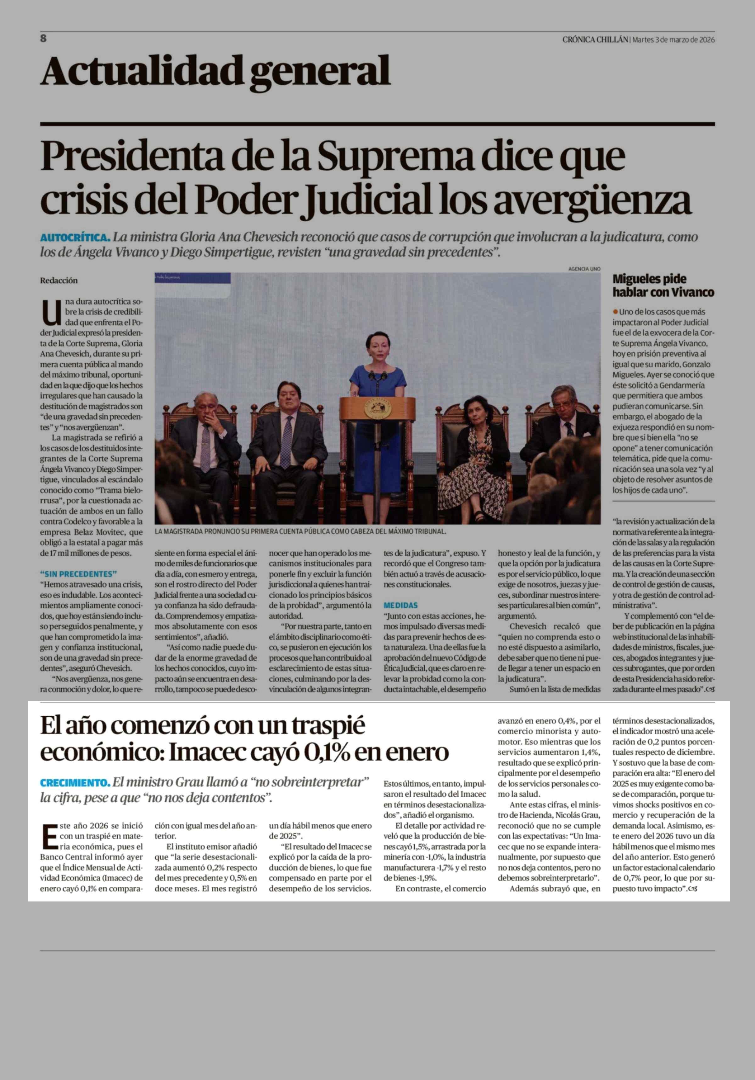 El año comenzó con un traspié económico: Imacec cayó 0,1% en enero 03-03-2026 Crónica de Chillán |