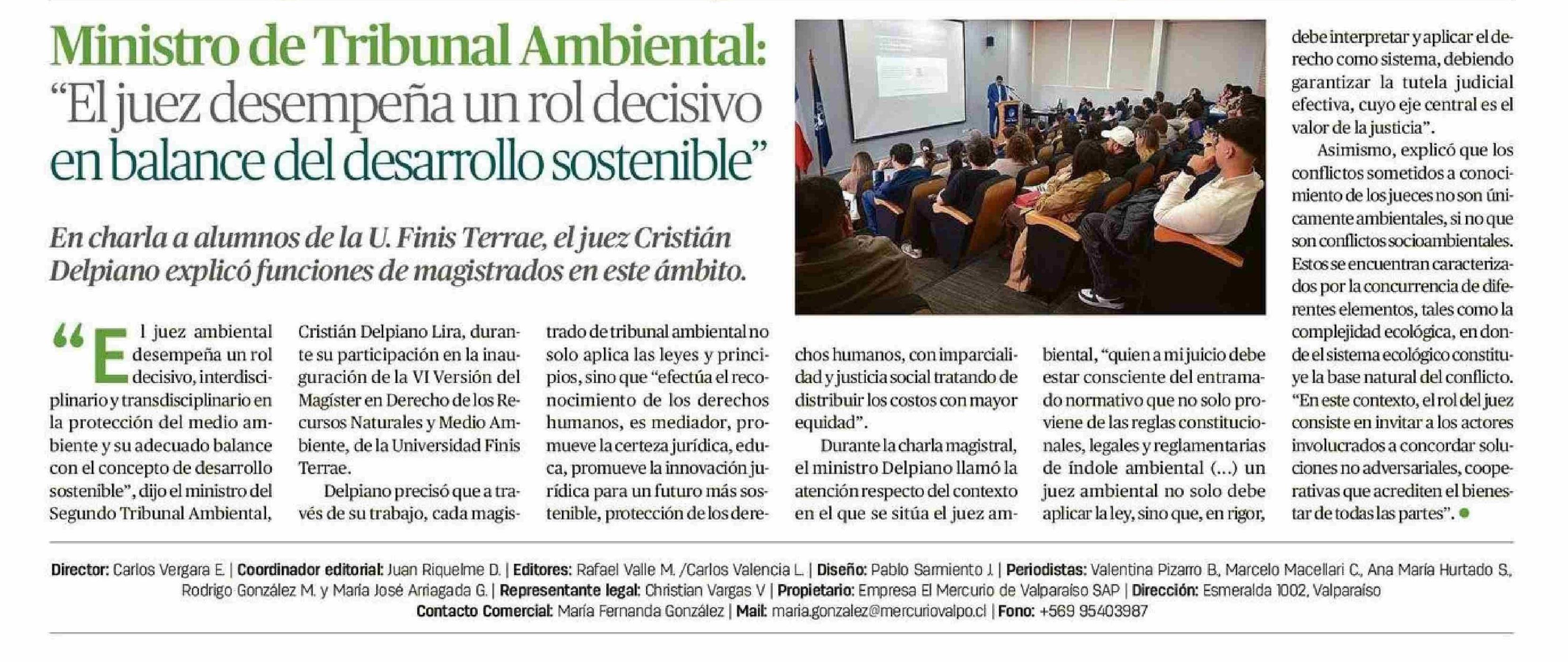 Ministro de Tribunal Ambiental: “El juez desempeña un rol decisivo en balance del desarrollo sostenible” 18-05-2025 El Mercurio de Valparaíso |