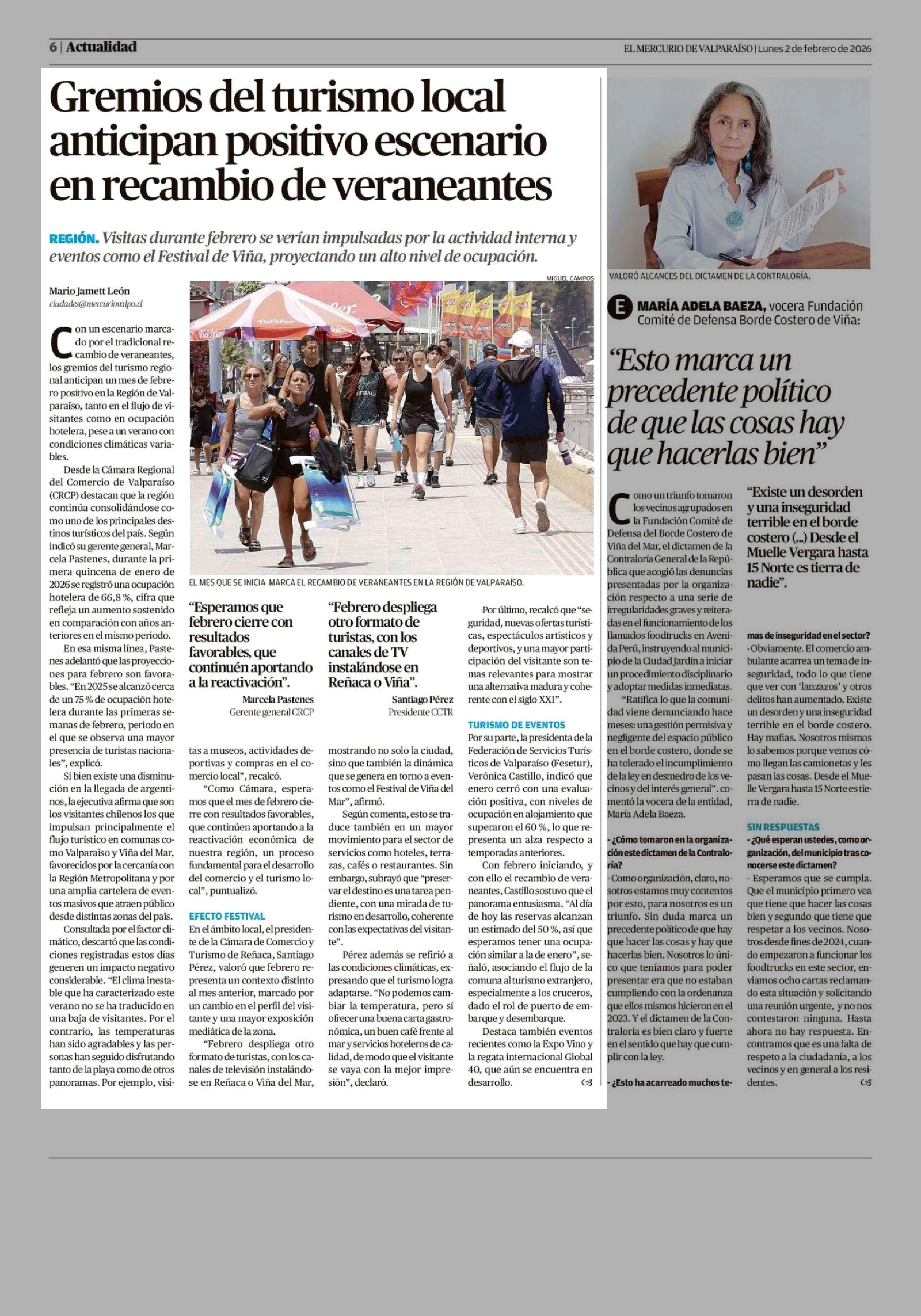 Gremios del turismo local anticipan positivo escenario en recambio de veraneantes 02-02-2026 El Mercurio de Valparaíso |