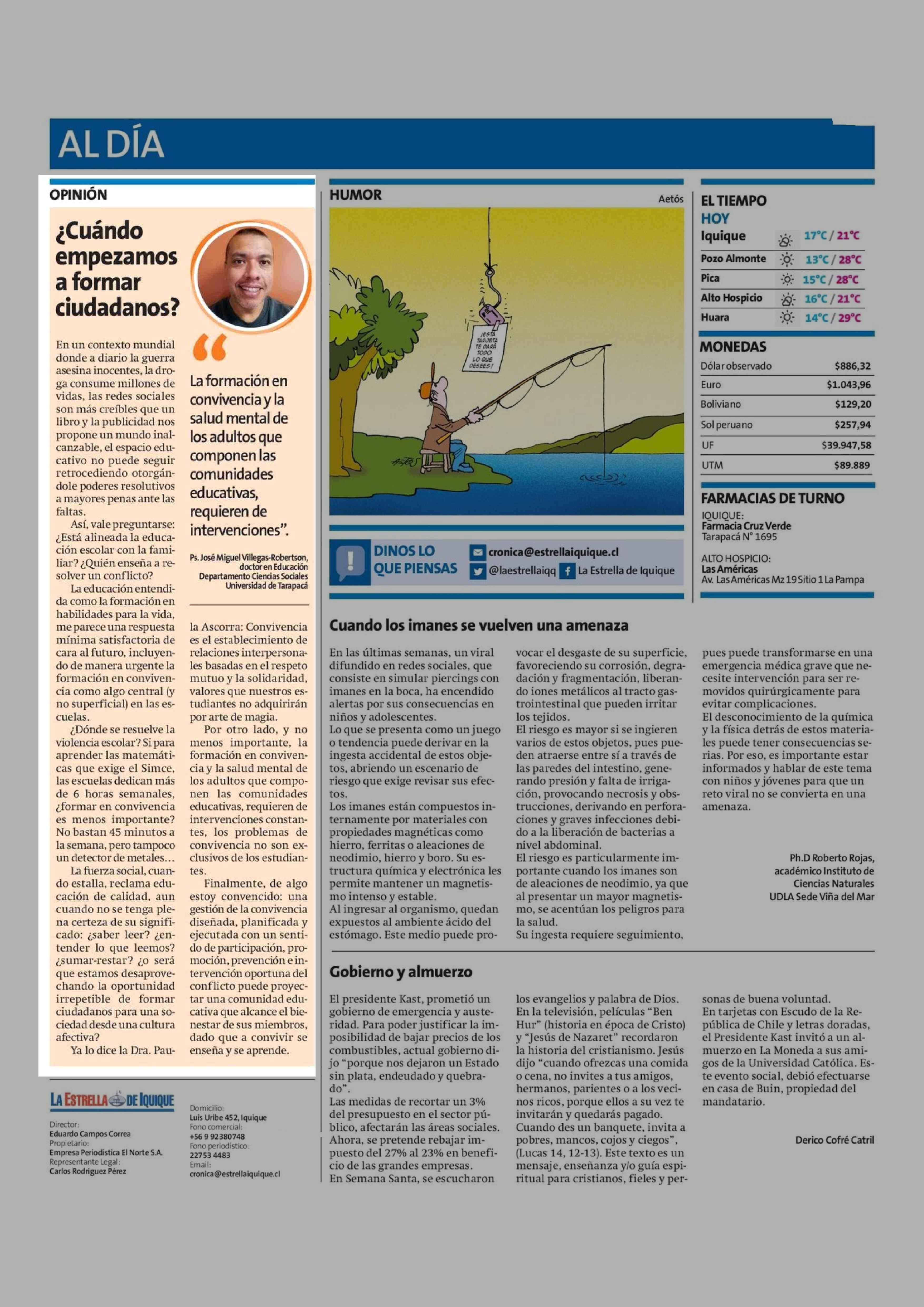Fecha: 17-04-2026 Sector: Columnas de Opinión Región: Región de Tarapacá