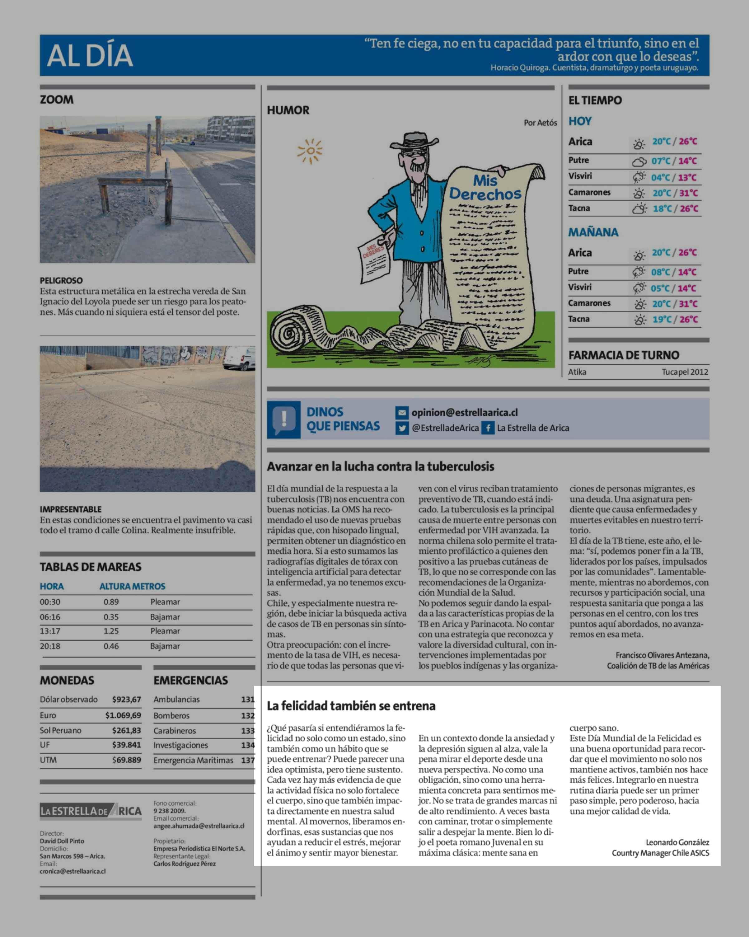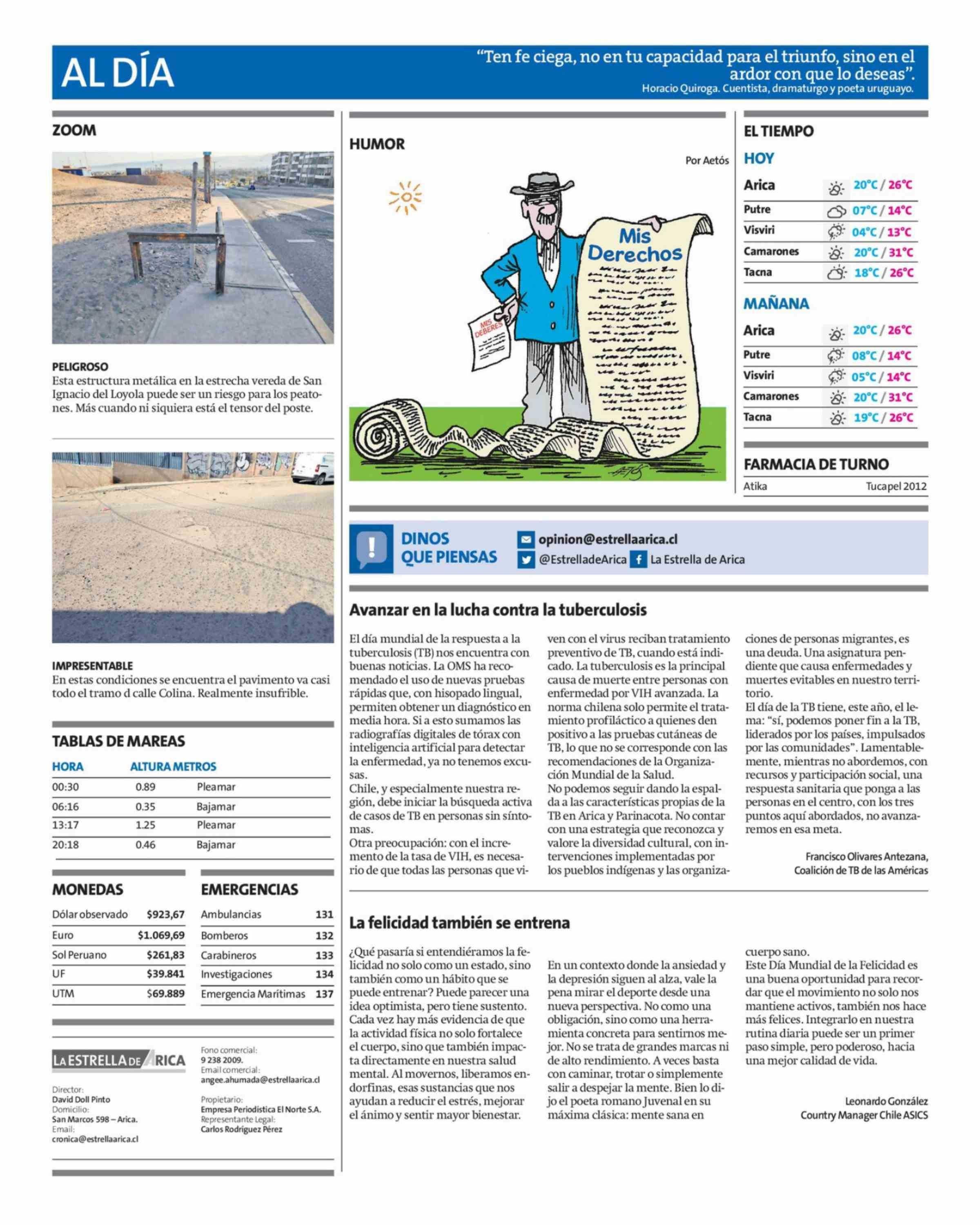 Fuente: La Estrella de Arica (La Estrella de Arica) Página(s): 6