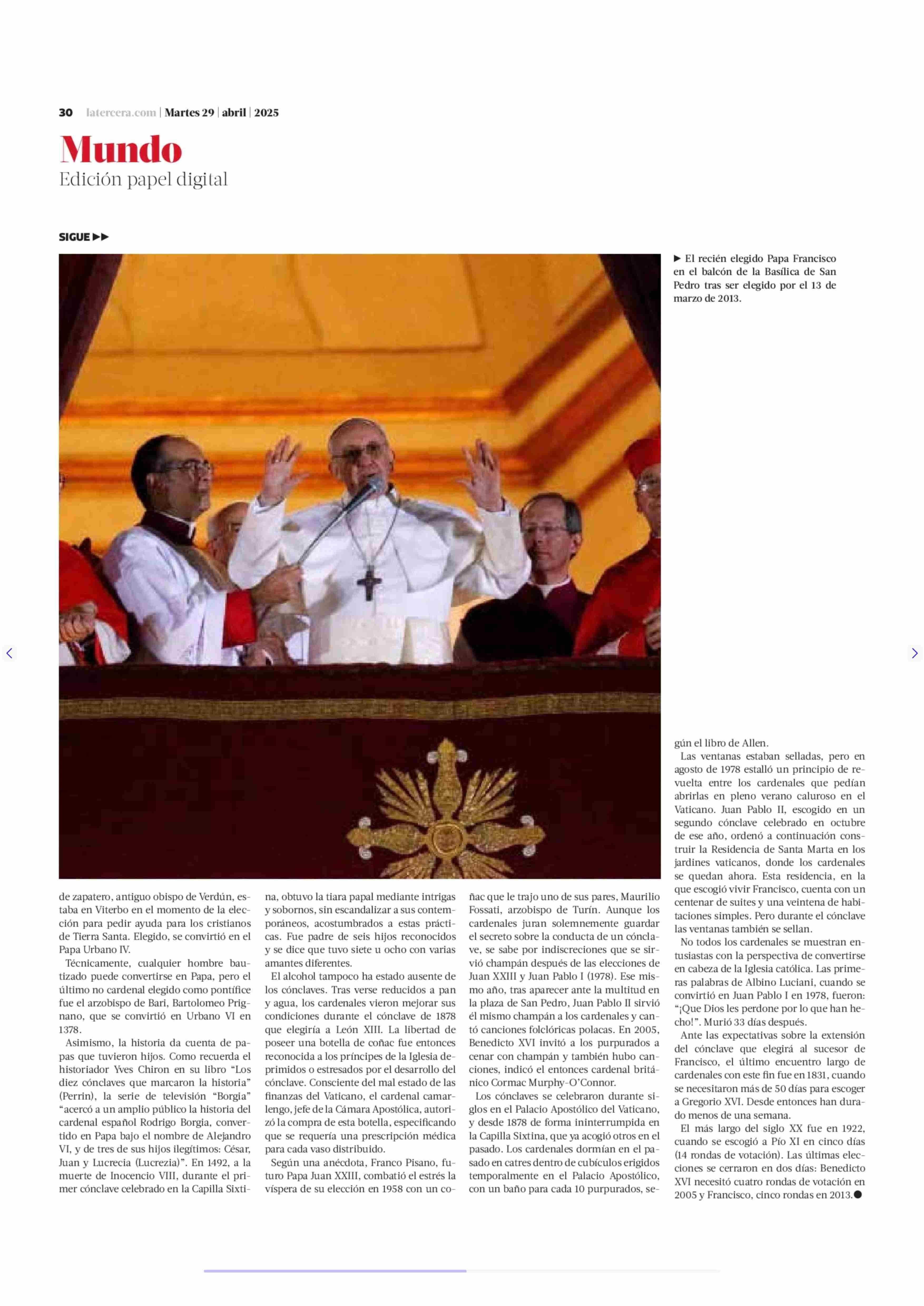 Entre palomas, coñac, muertes y encierros: las impactantes historias que han marcado las elecciones papales 29-04-2025 La Tercera |