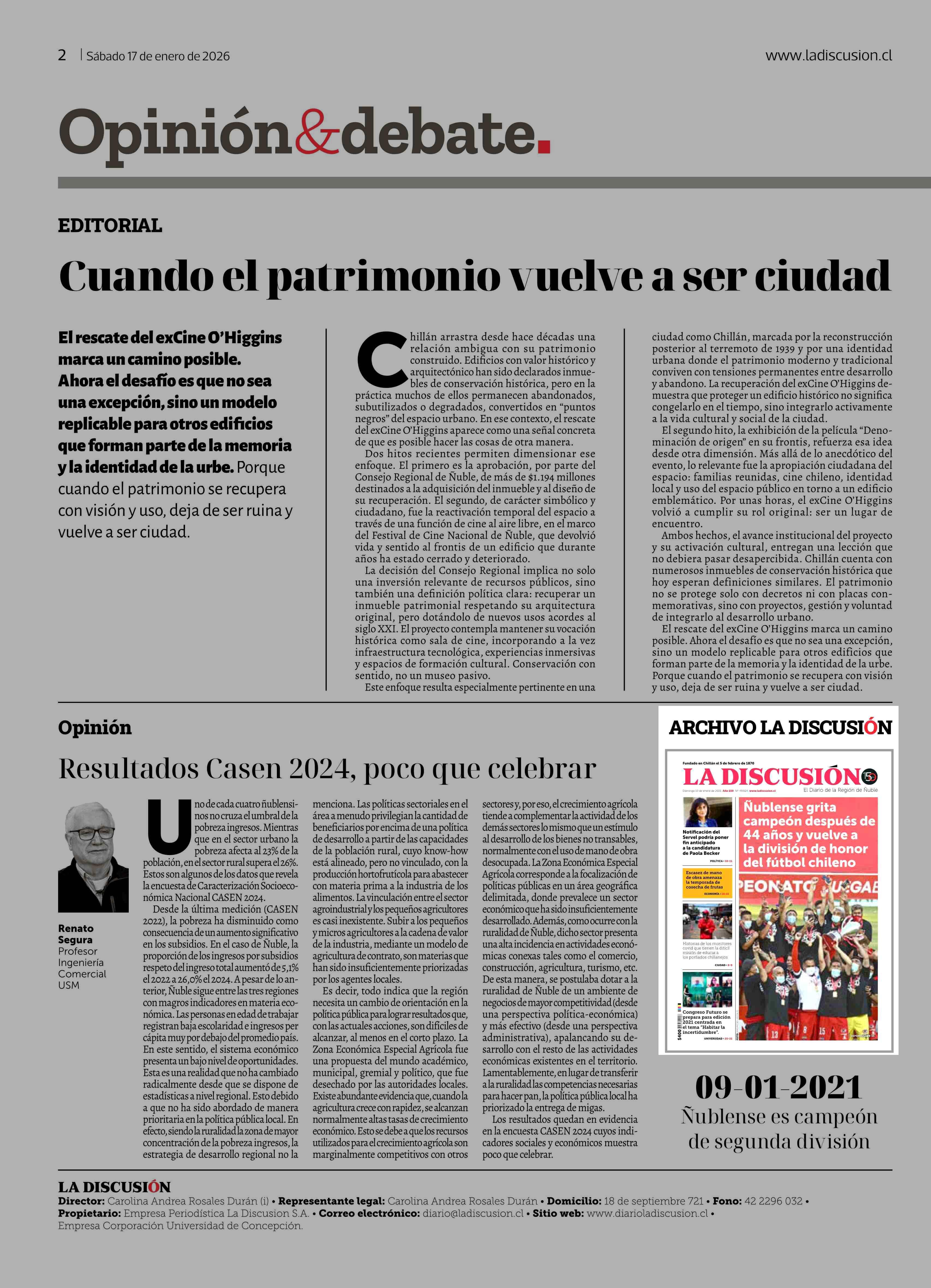 Columnas de Opinión: ARCHIVO LA DISCUSIÓN 17-01-2026 La Discusión |