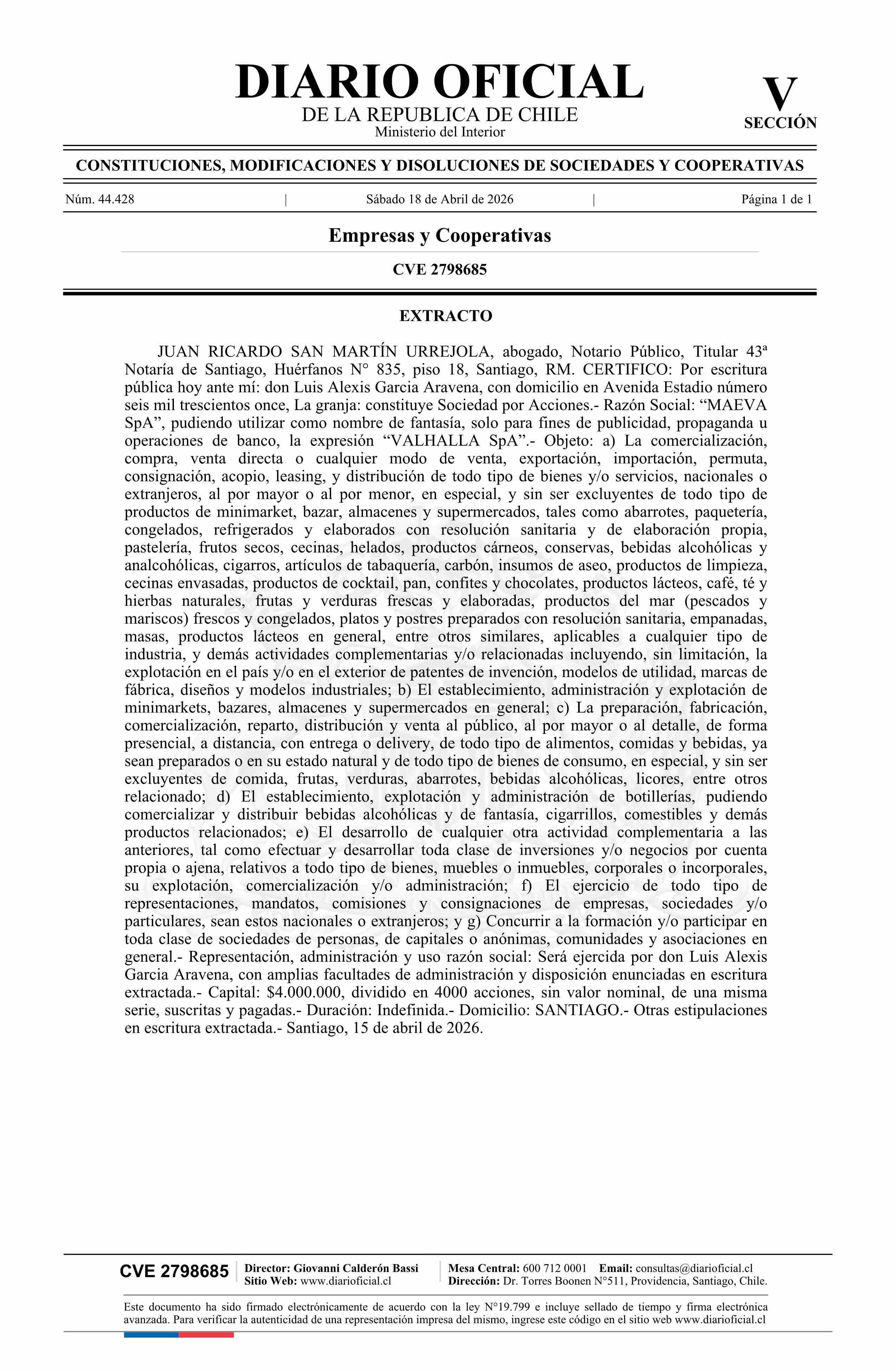 MAEVA SpA 18-04-2026 Diario Oficial Edición Electrónica |