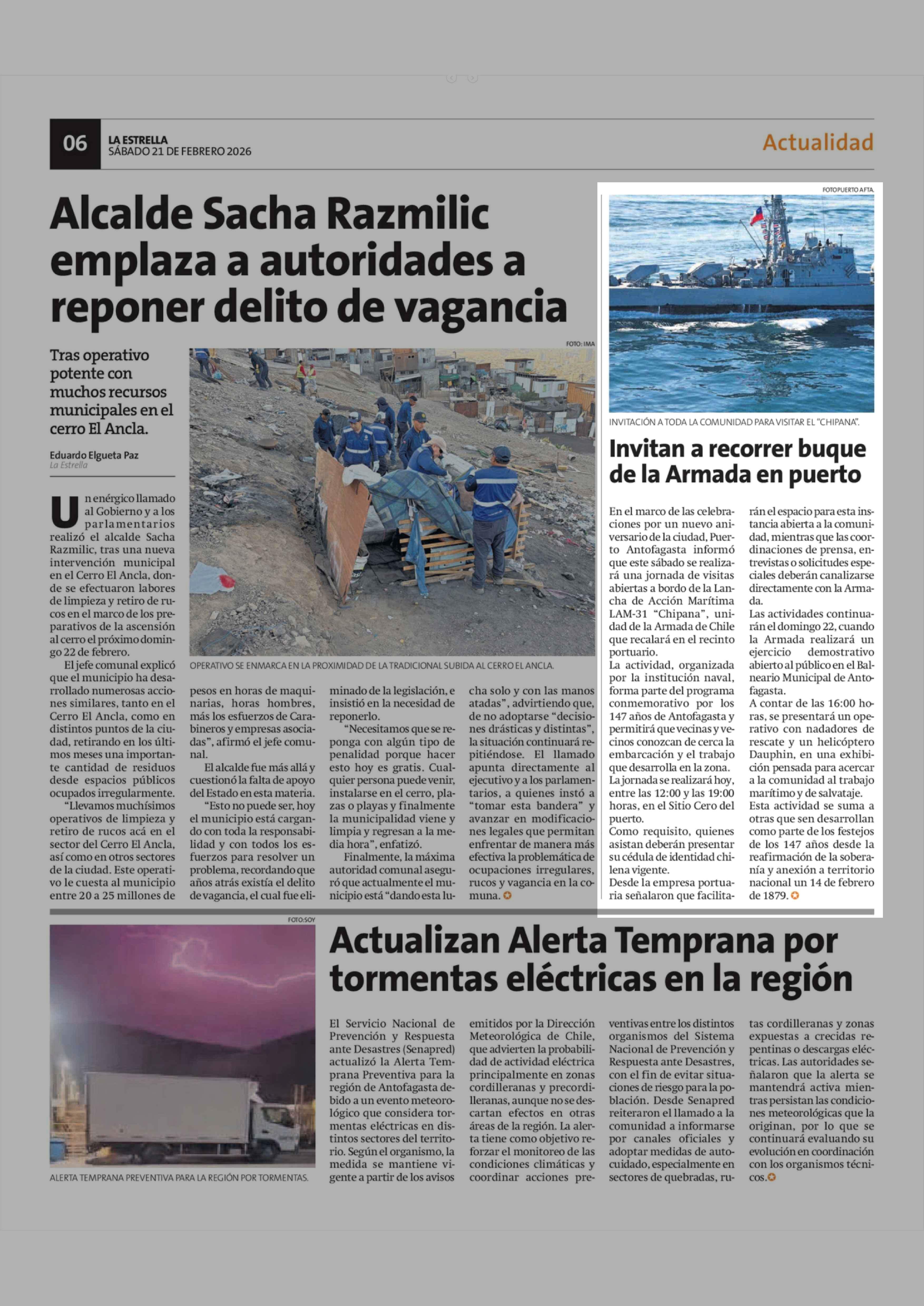| Fecha: | 21-02-2026 | Sector: | Noticia general | Región: | Región de Antofagasta |