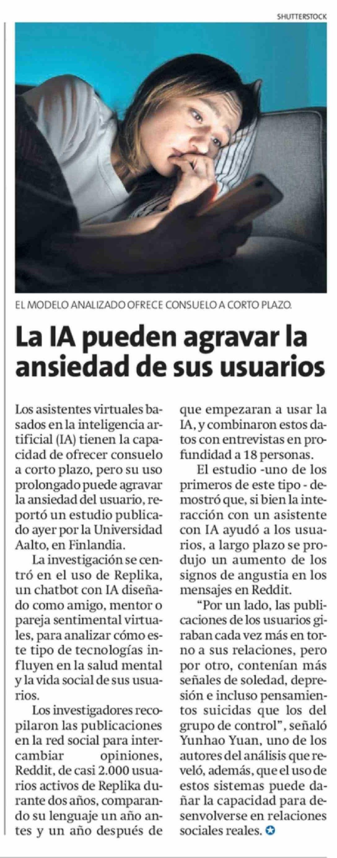 Título: La IA pueden agravar la ansiedad de sus usuarios