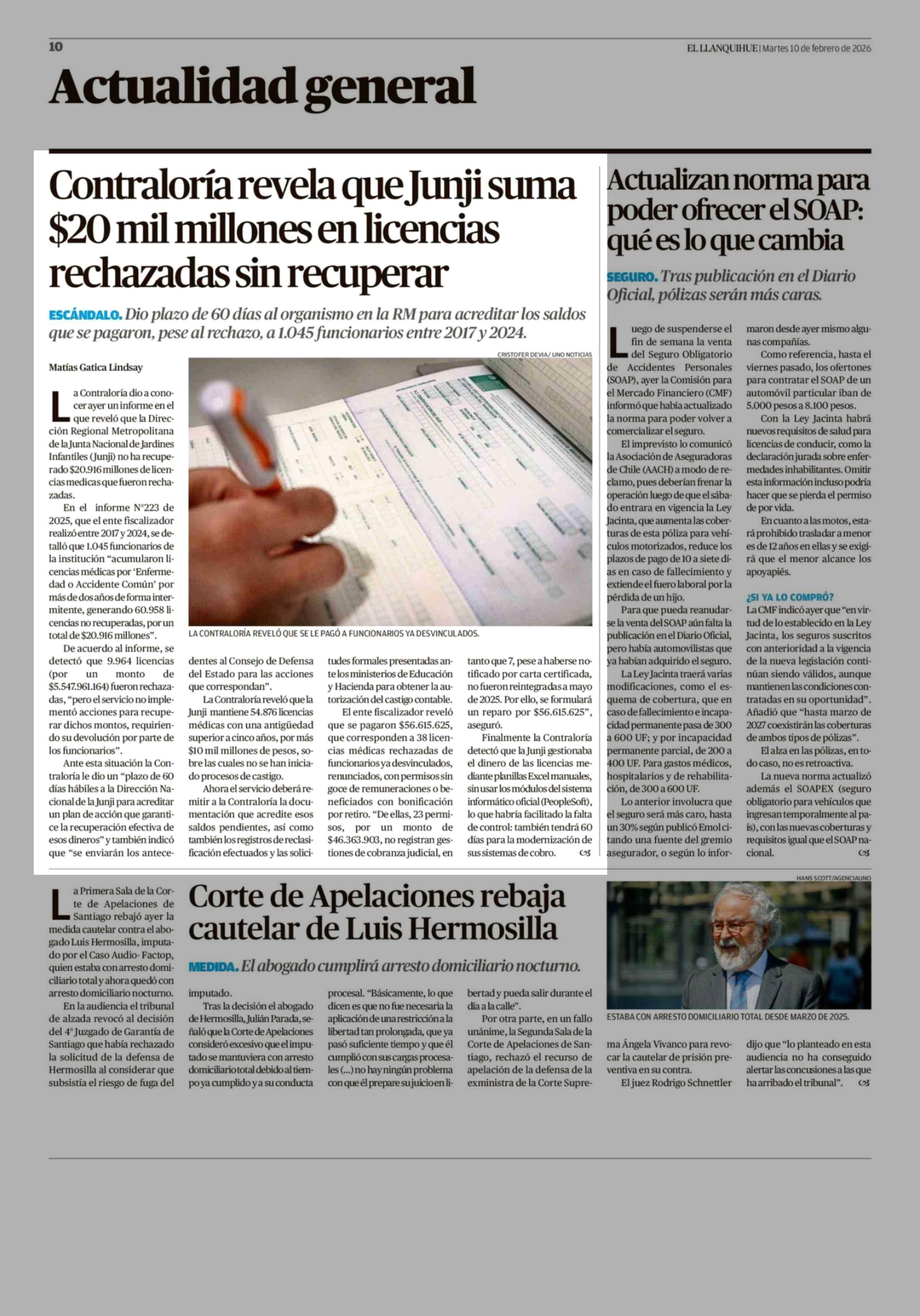Título: Contraloría revela que Junji suma $20 mil millones en licencias rechazadas sin recuperar