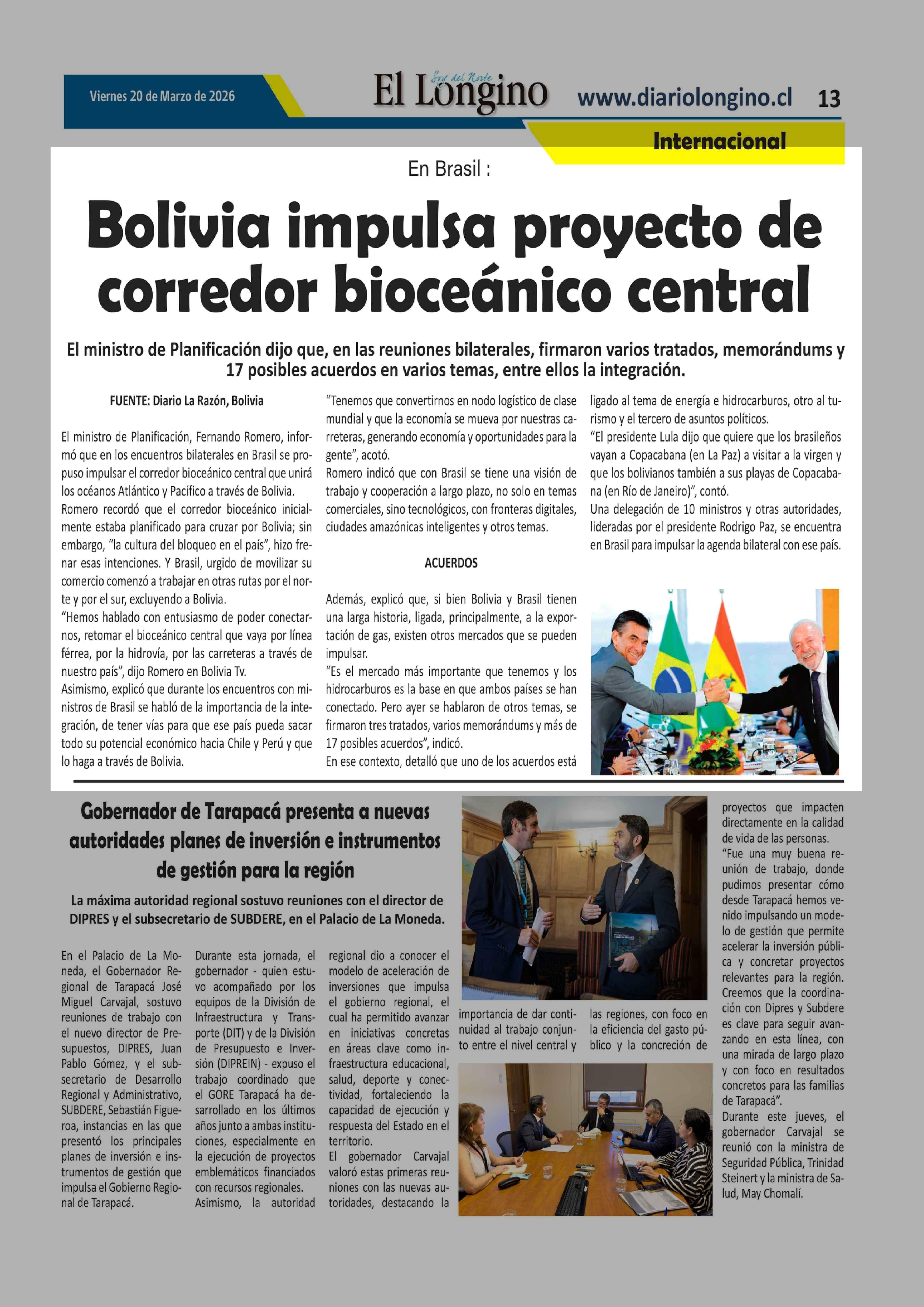 Título: Bolivia impulsa proyecto de corredor bioceánico central