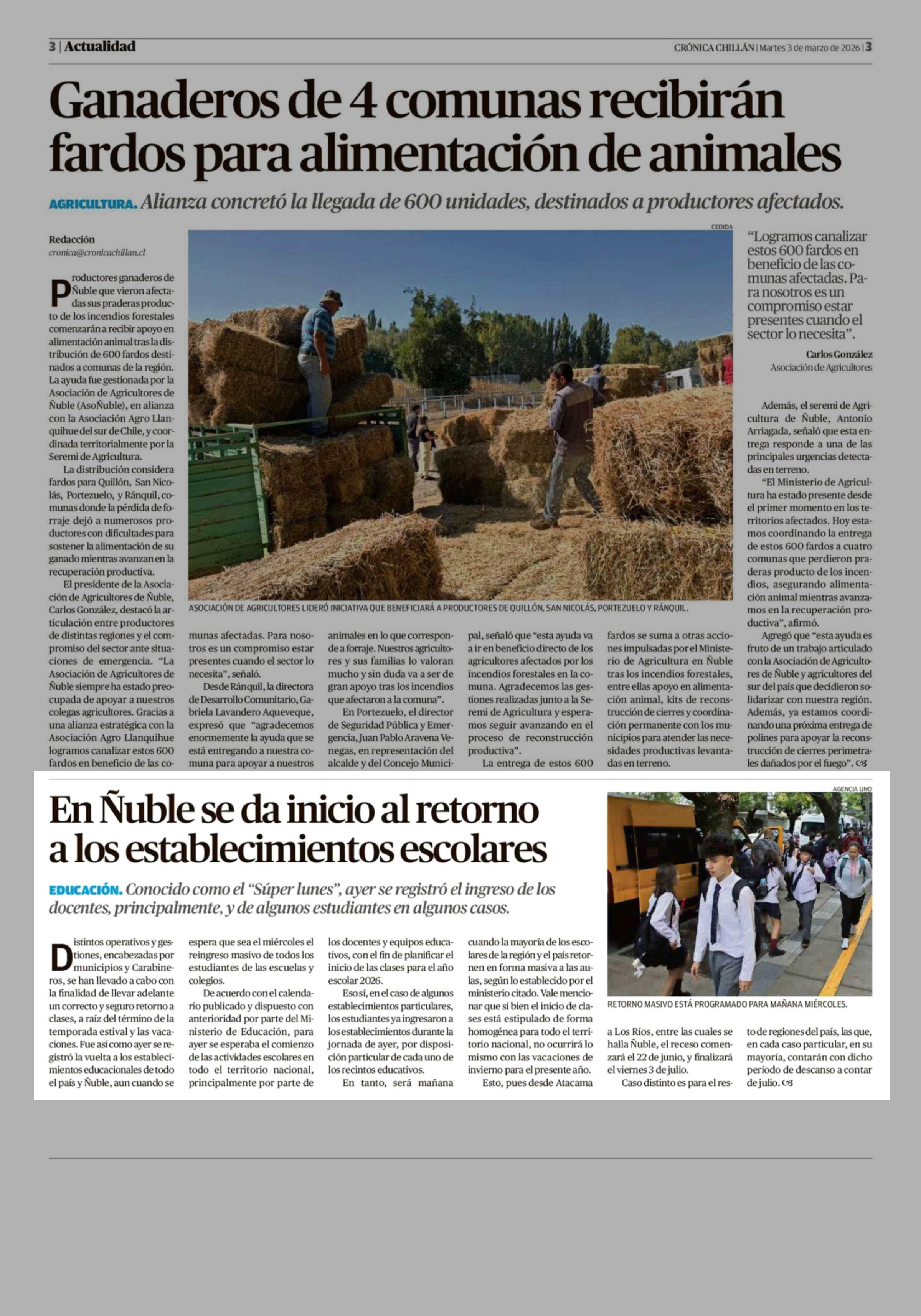 Fecha: 03-03-2026 Sector: Noticia general Región: Región del Ñuble