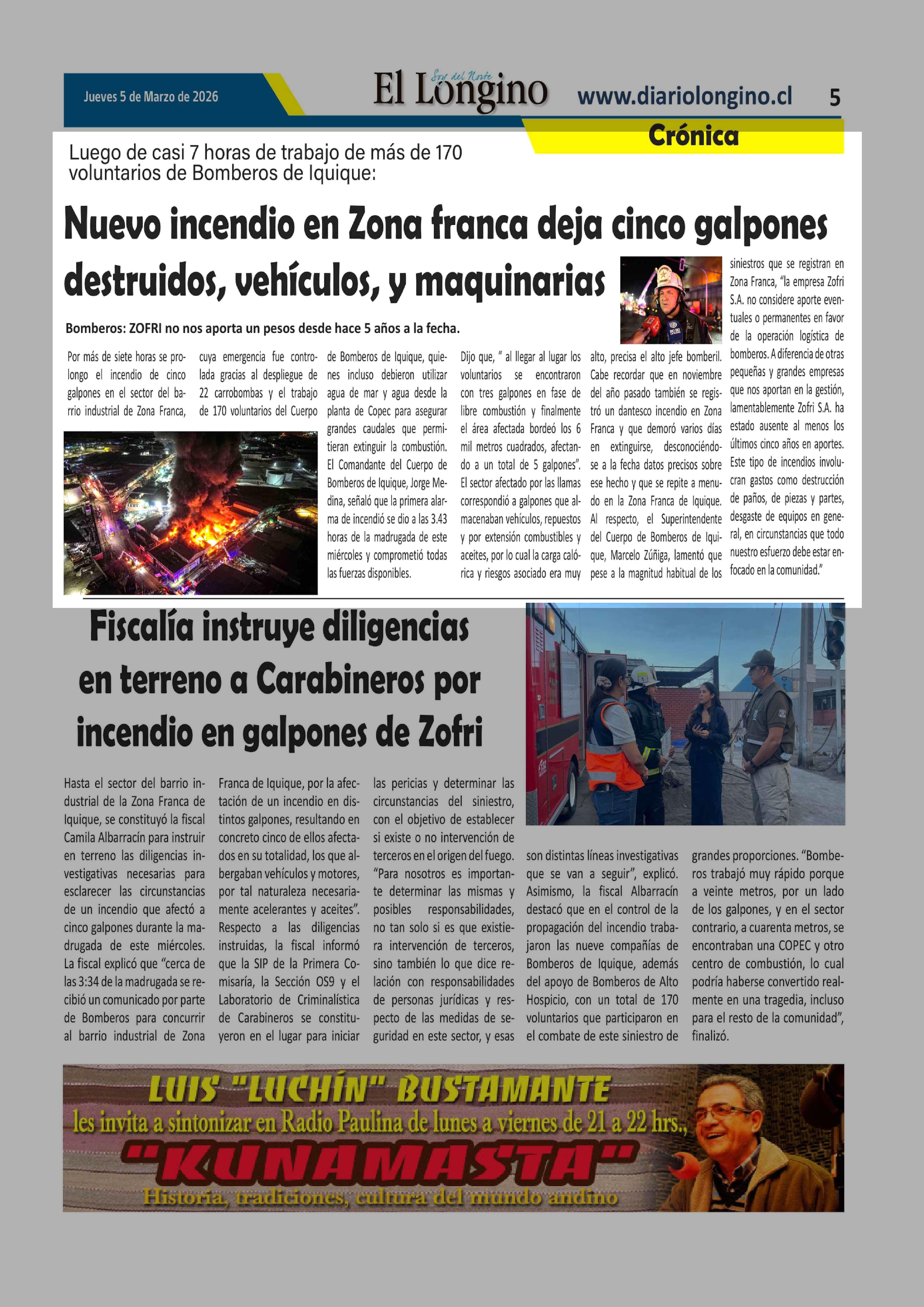 | Fecha: | 05-03-2026 | Sector: | Noticia general | Región: | Región de Tarapacá |