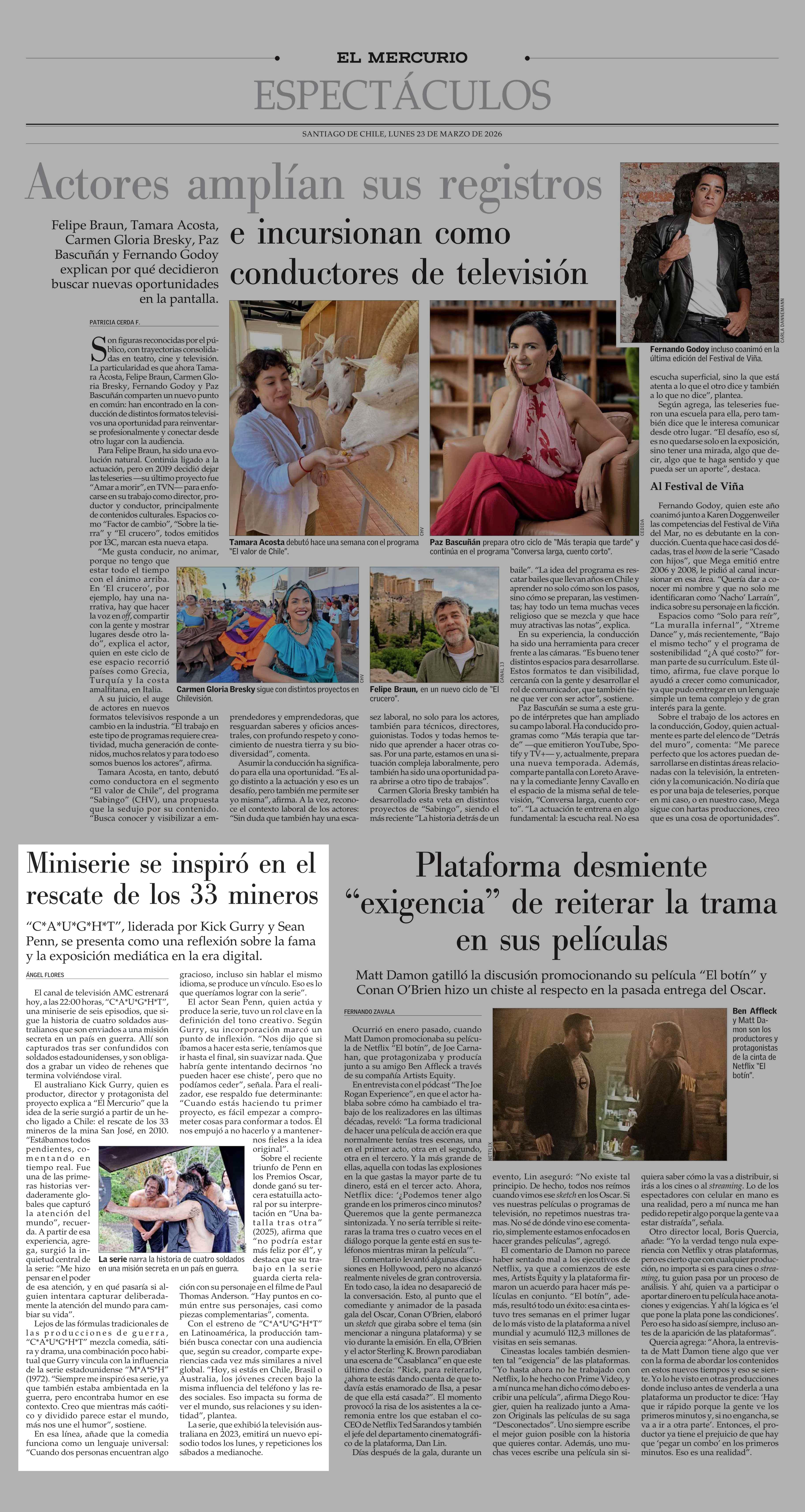 Miniserie se inspiró en el rescate de los 33 mineros 23-03-2026 El Mercurio |