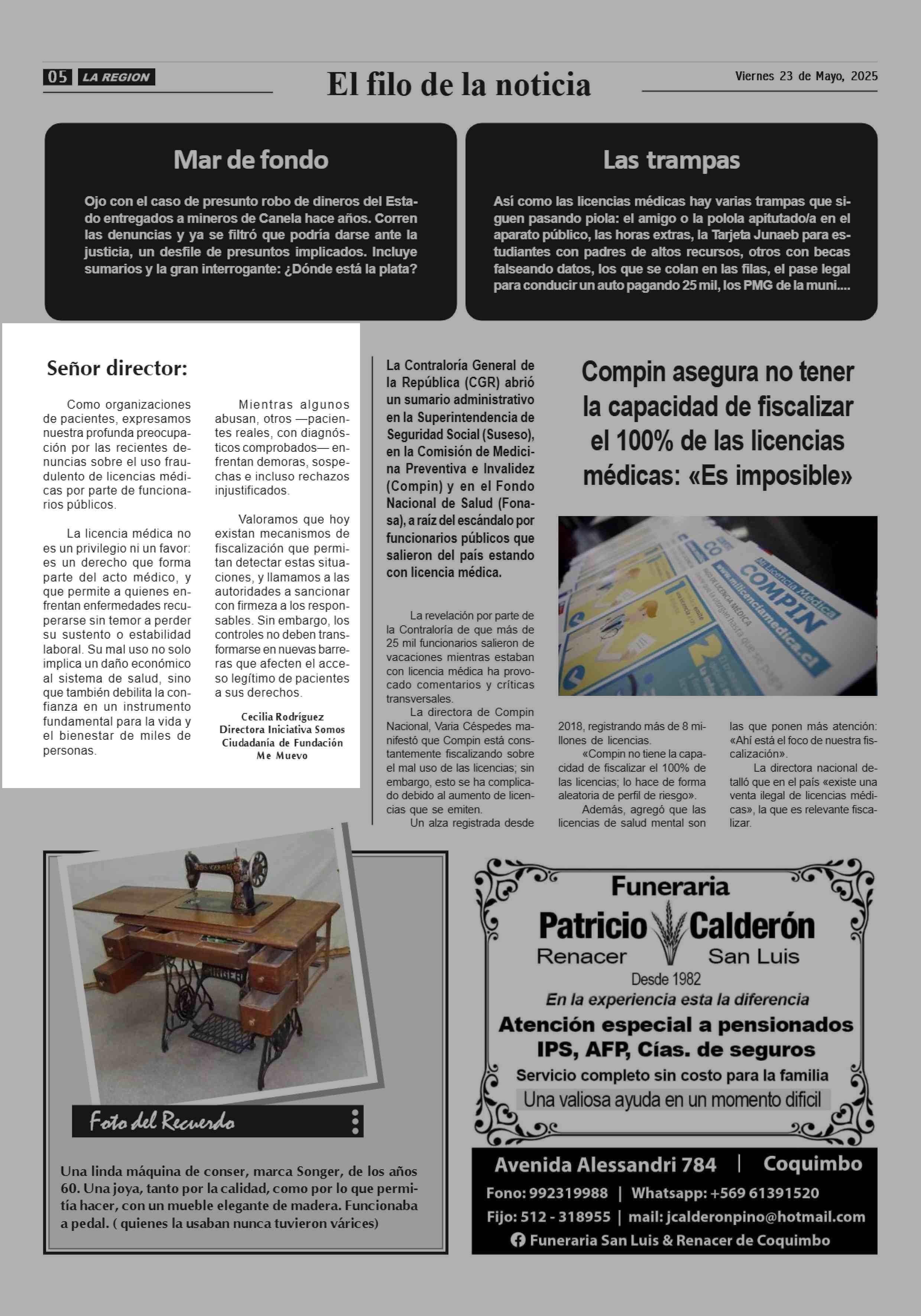 CARTAS: Señor director: 23-05-2025 Diario la Región |