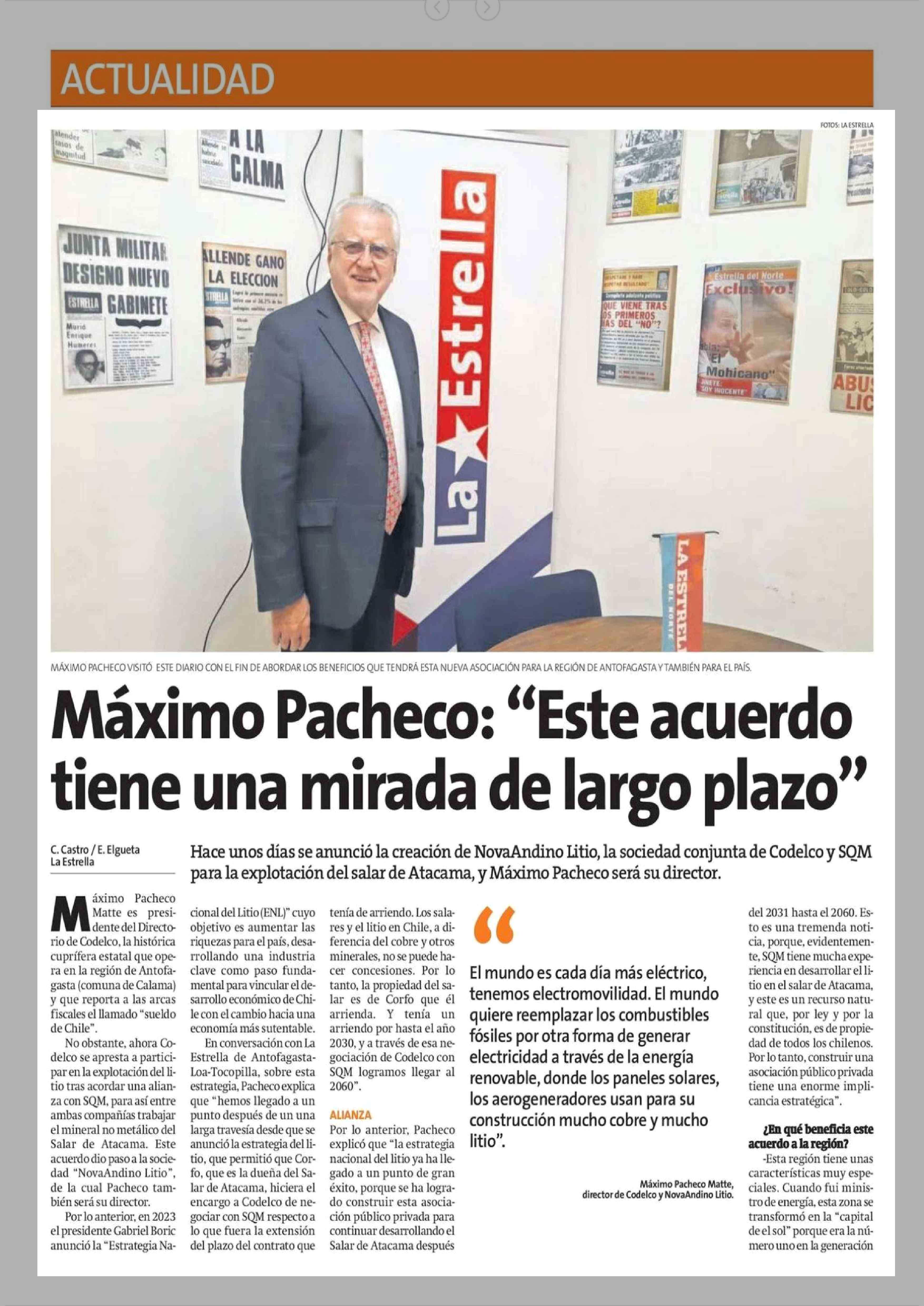Título: Máximo Pacheco: "Este acuerdo tiene una mirada de largo plazo"