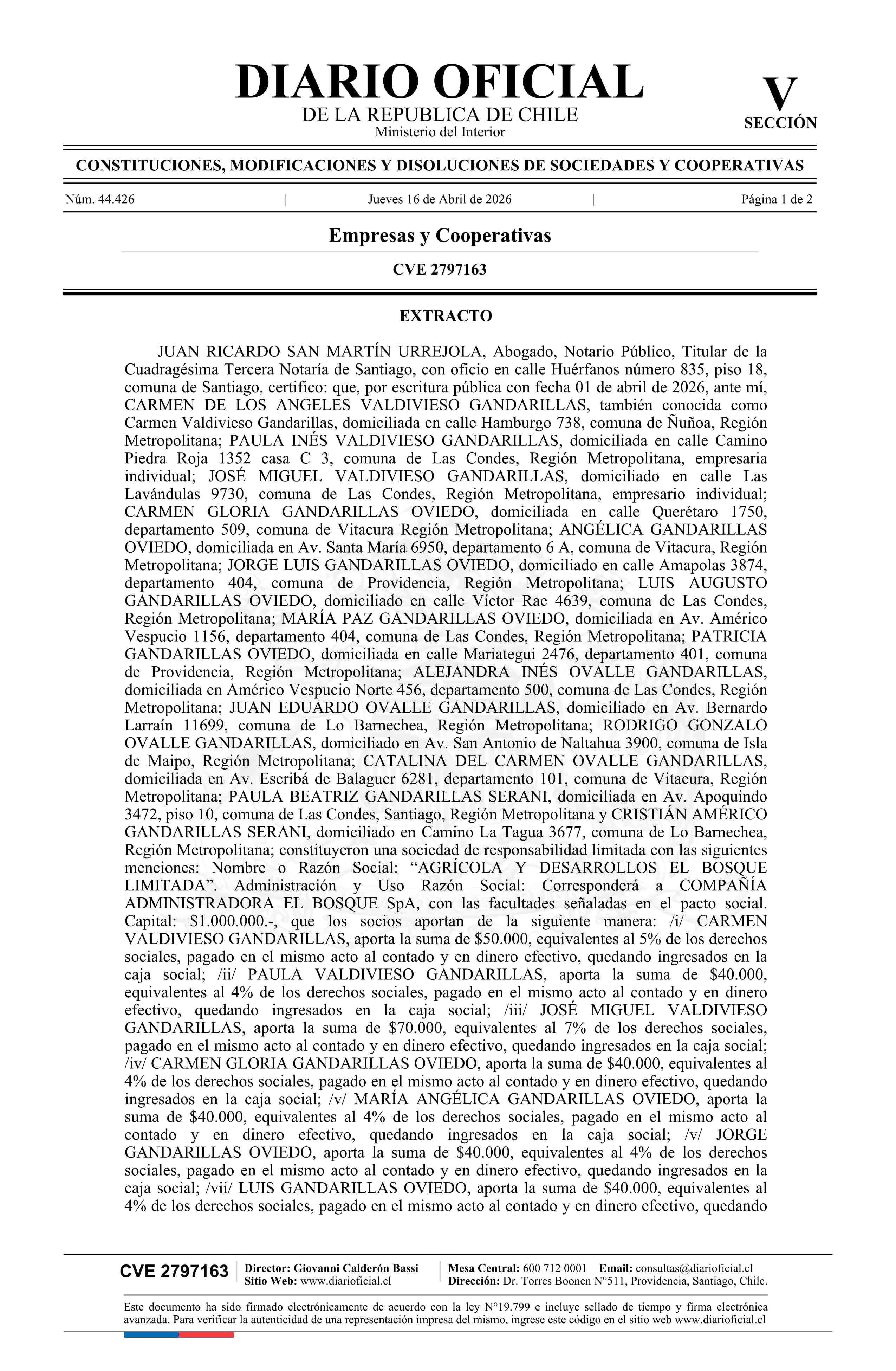 Título: AGRÍCOLA Y DESARROLLOS EL BOSQUE LIMITADA