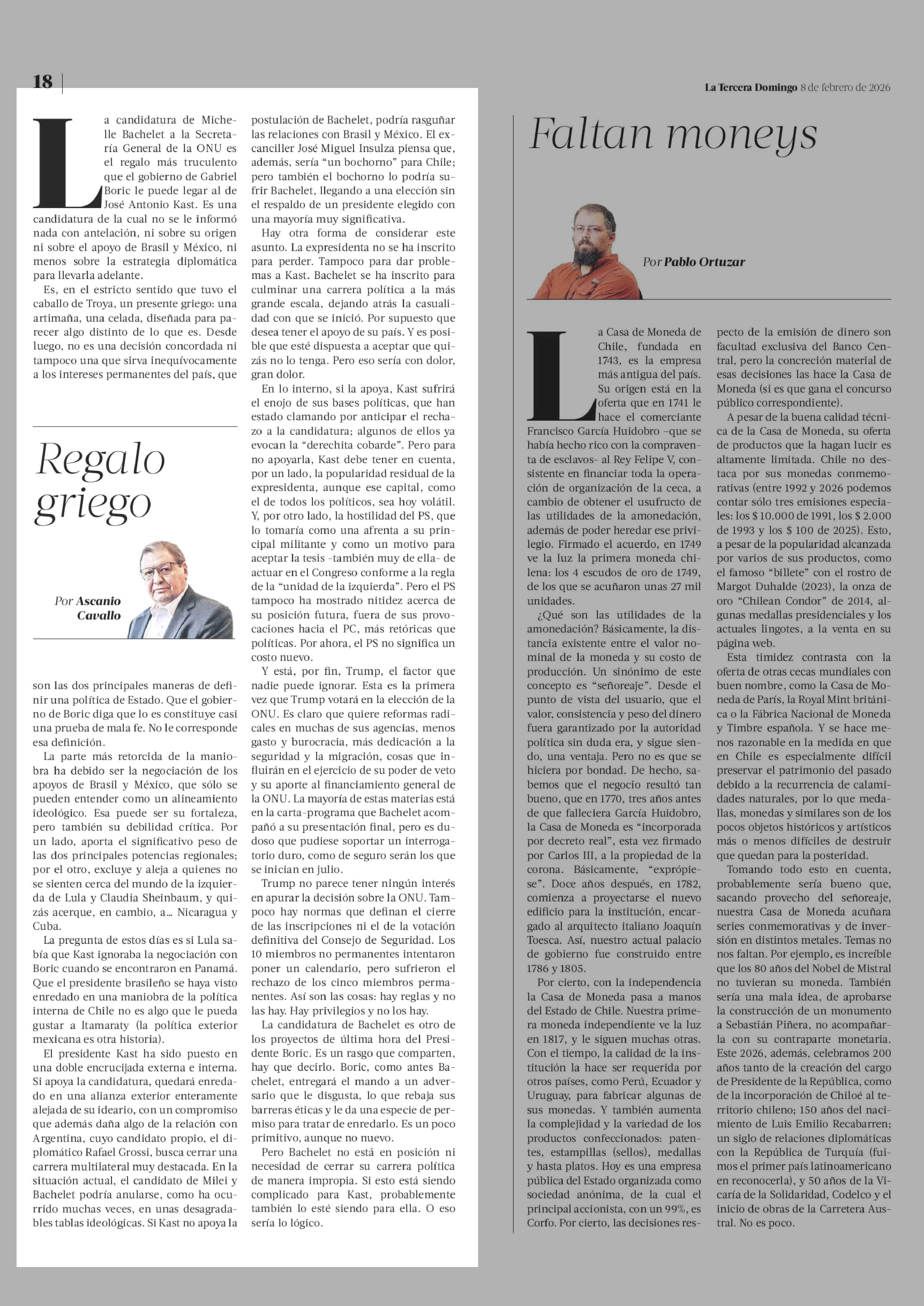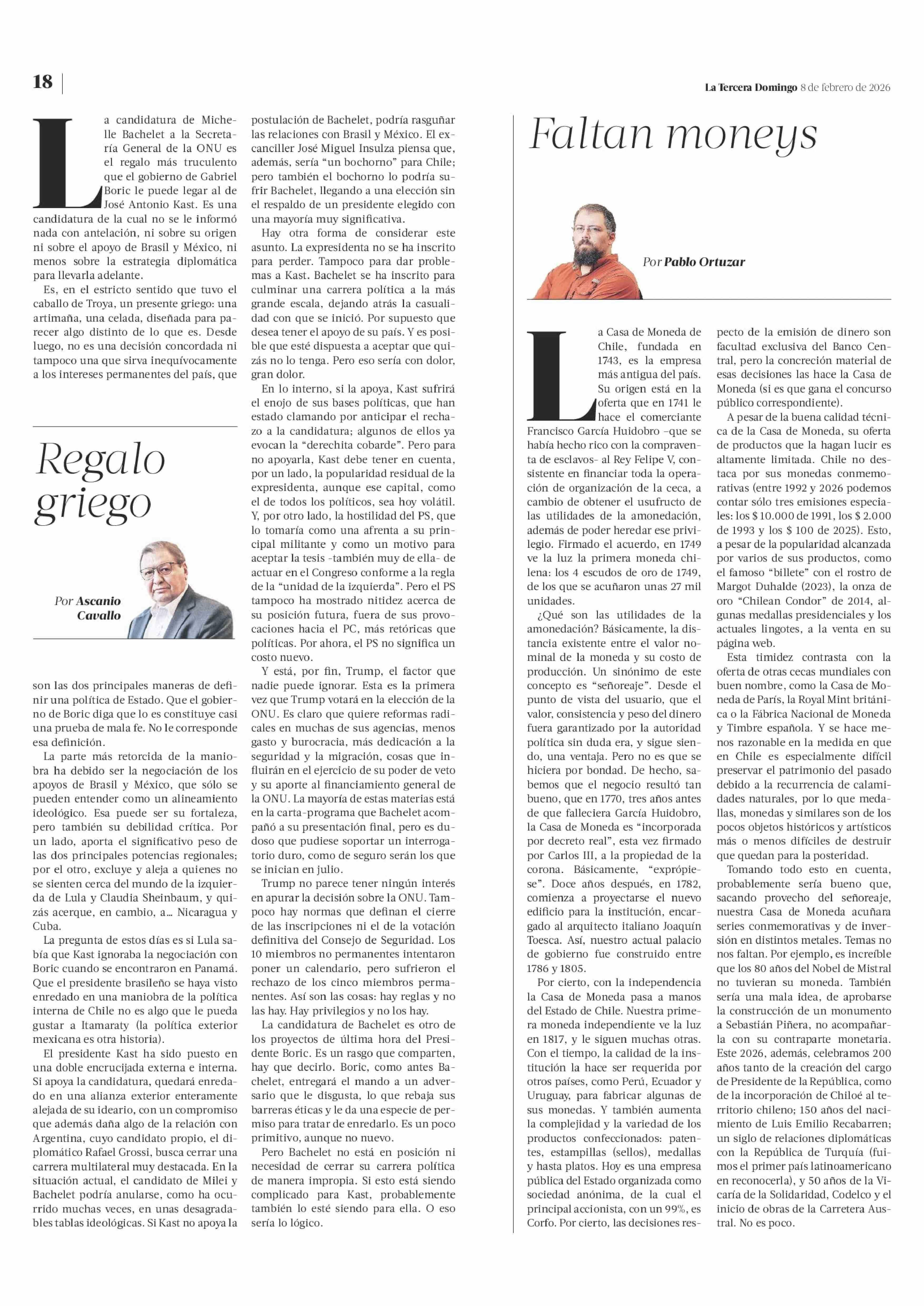 COLUMNAS DE OPINIÓN: Regalo griego 08-02-2026 La Tercera |