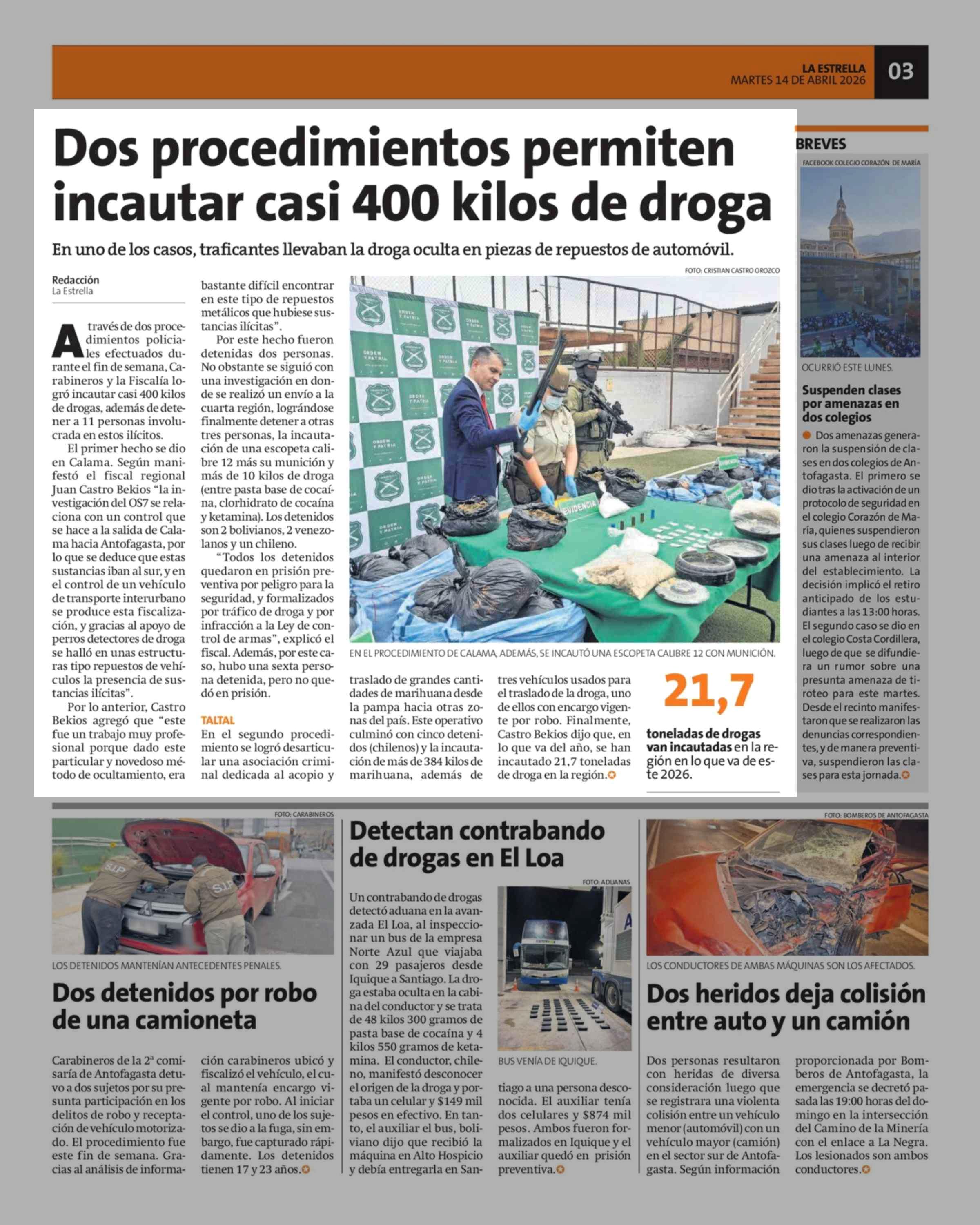 Fecha: 14-04-2026 Sector: Noticia general Región: Región de Antofagasta