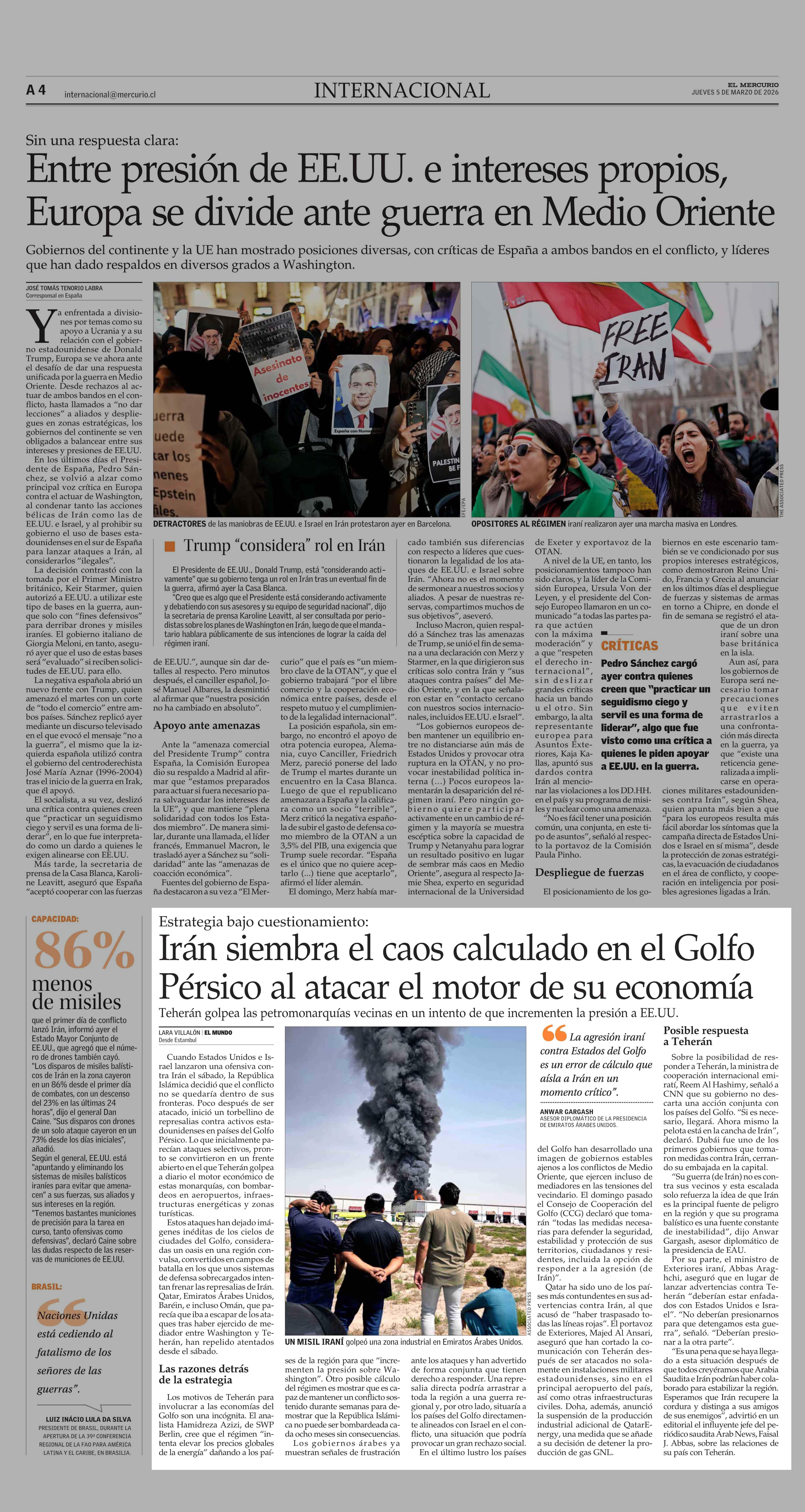 Irán siembra el caos calculado en el Golfo Pérsico al atacar el motor de su economía 05-03-2026 El Mercurio |