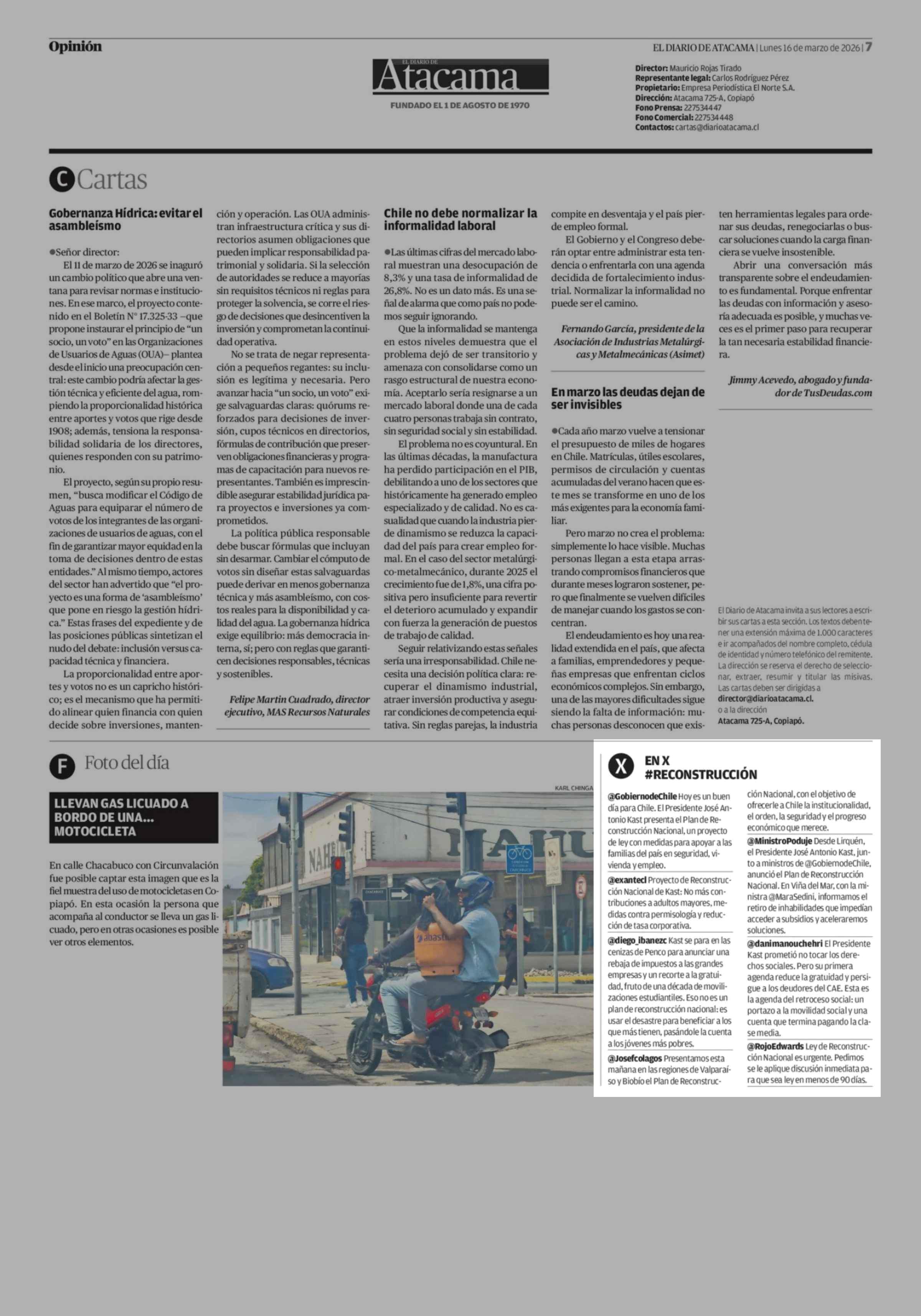 EN X #RECONSTRUCCIÓN 16-03-2026 El Diario de Atacama |