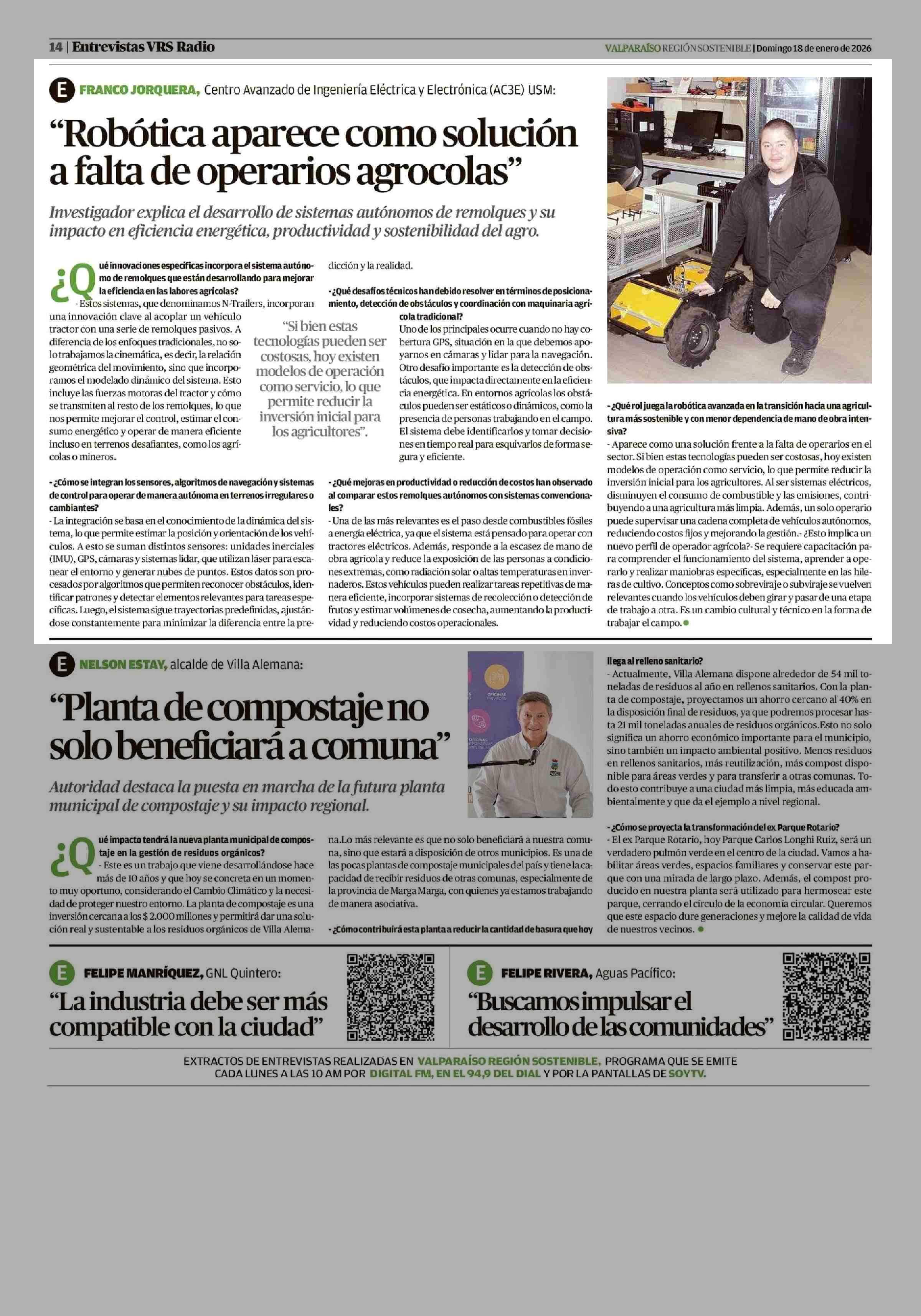 "Robótica aparece como solución a falta de operarios agrocolas" 18-01-2026 El Mercurio de Valparaíso |