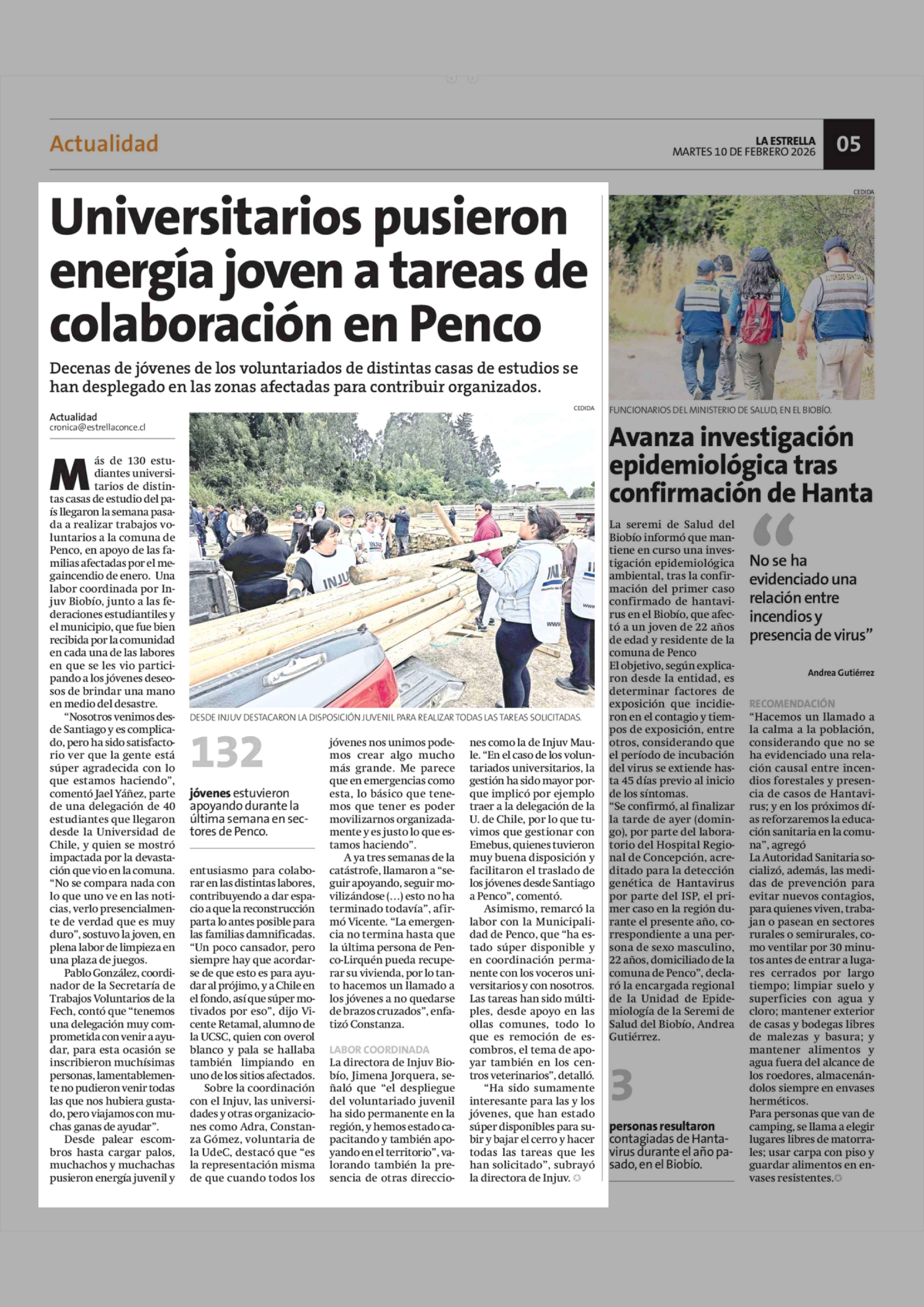 Universitarios pusieron energía joven a tareas de colaboración en Penco 10-02-2026 La Estrella de Concepción |
