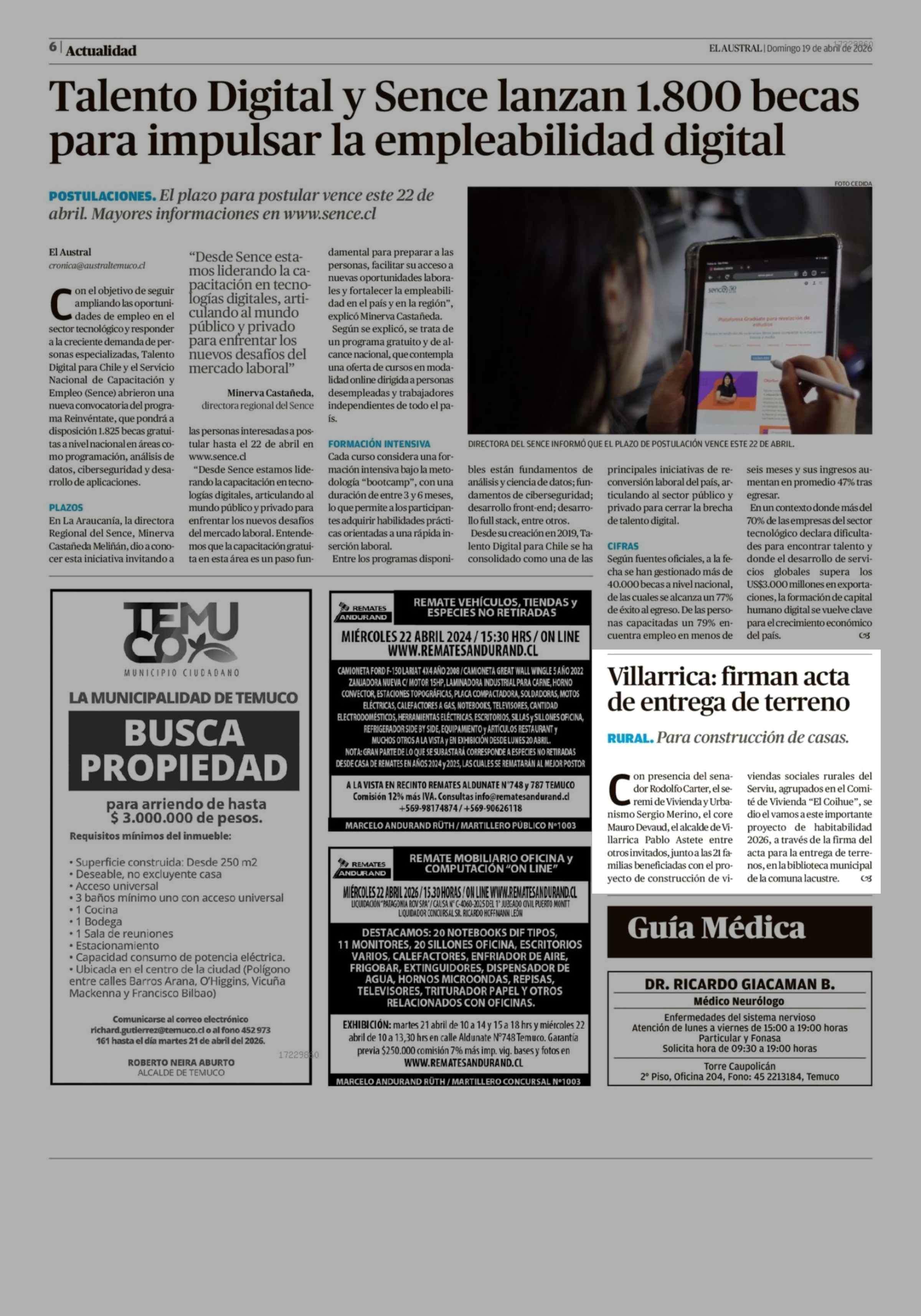 | Fecha: | 19-04-2026 | Sector: | Noticia general | Región: | Región de la Araucanía |
