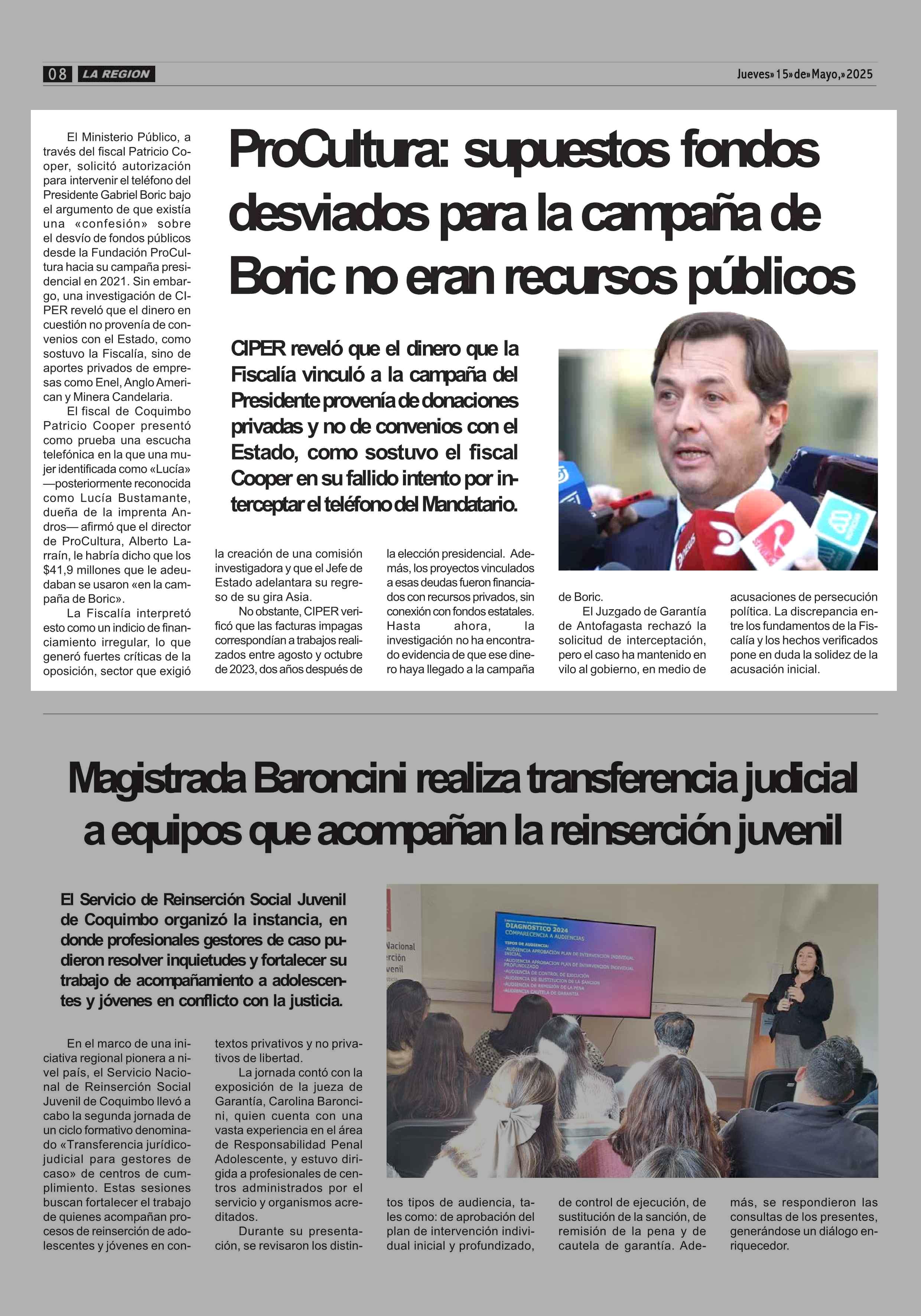 ProCultura: supuestos fondos desviados para la campaña de Boric no eran recursos públicos 15-05-2025 Diario la Región |