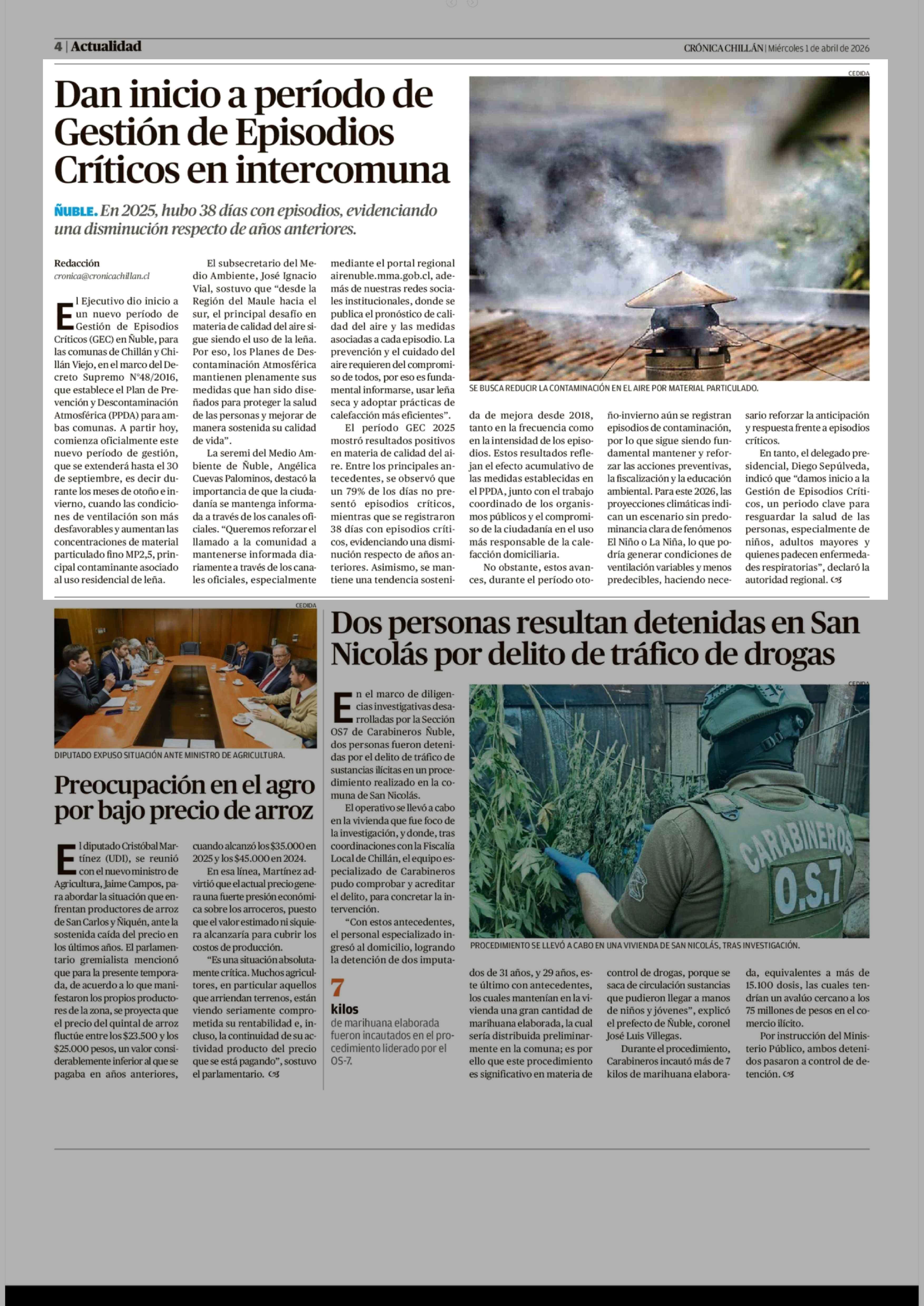 Fecha: 01-04-2026 Sector: Noticia general Región: Región del Ñuble