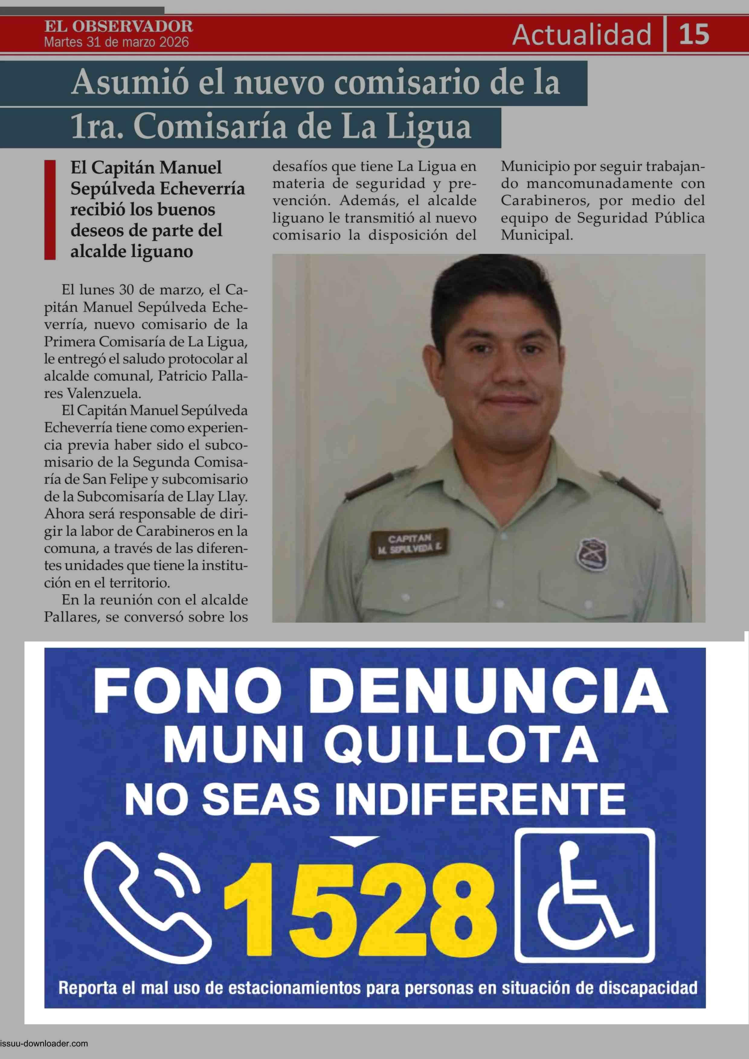 AVISO PUBLICITARIO: FONO DENUNCIA MUNI QUILLOTA 31-03-2026 El Observador Vespertino |