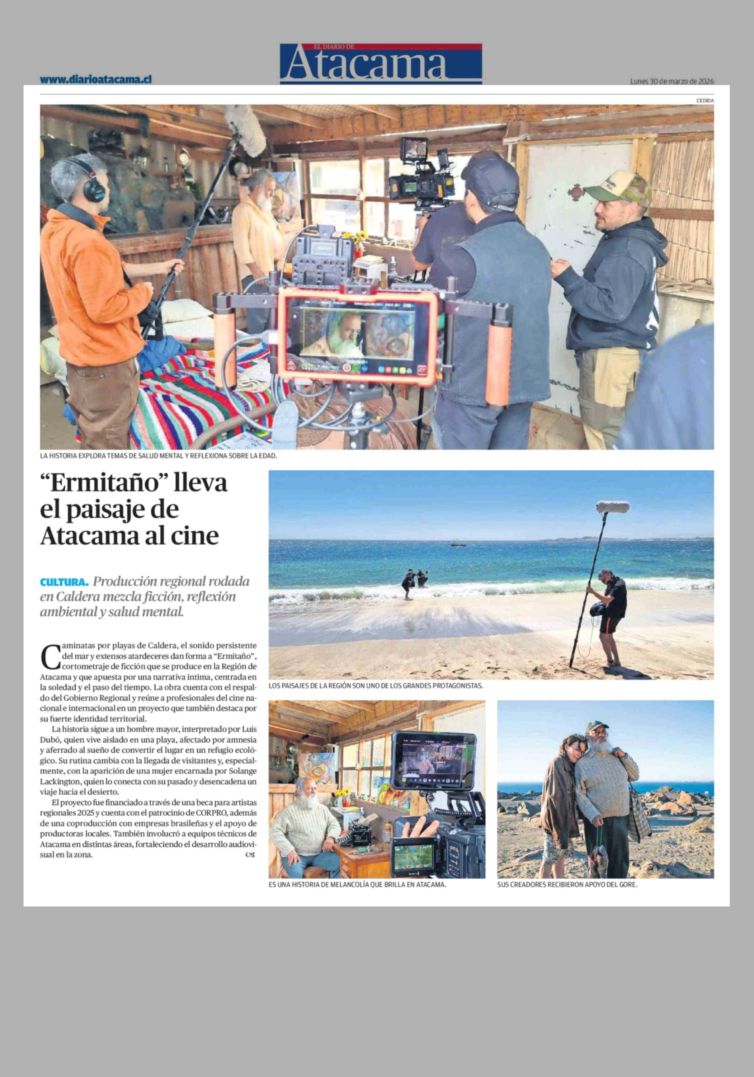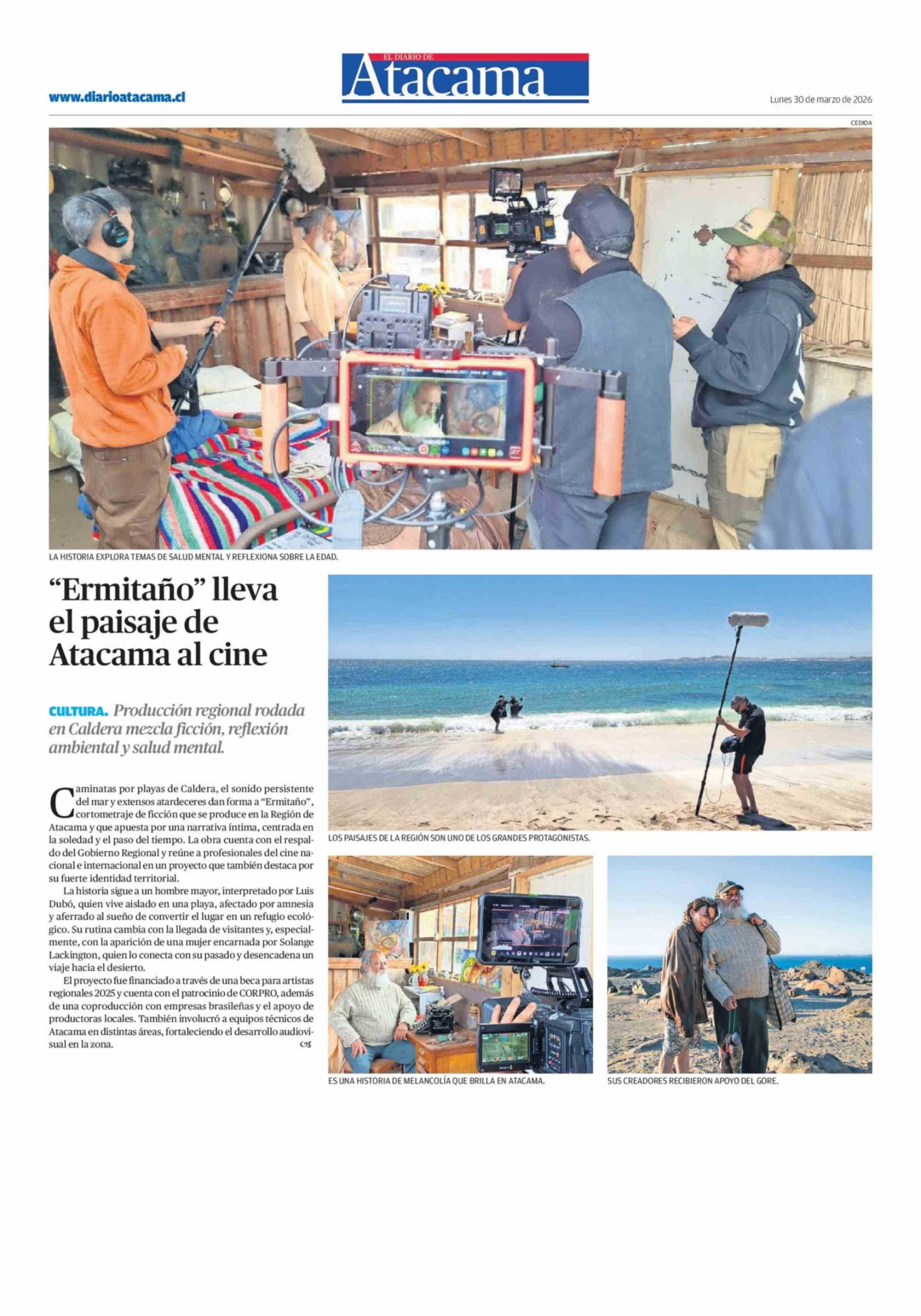 "Ermitaño" lleva el paisaje de Atacama al cine 30-03-2026 El Diario de Atacama |