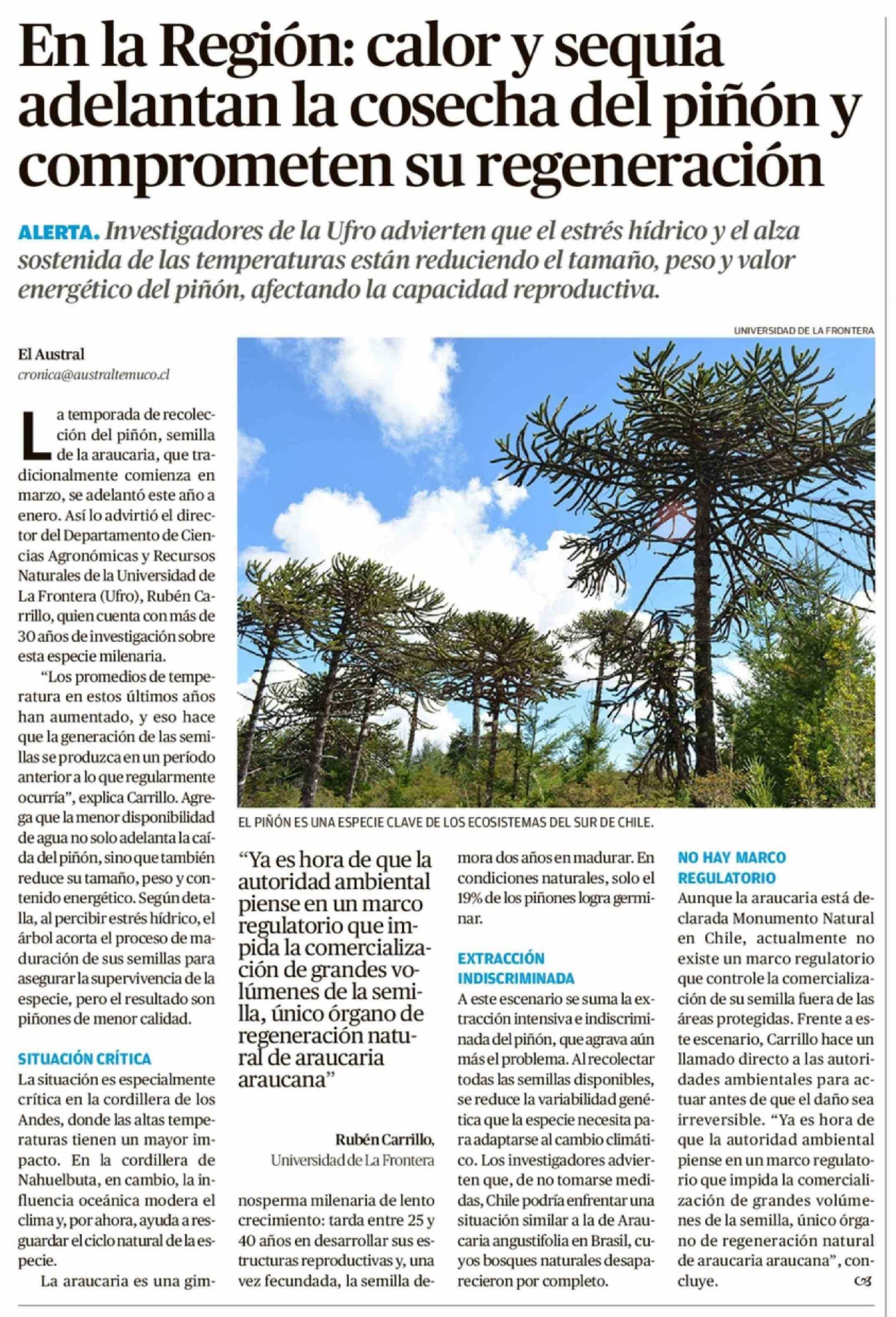 Título: En la Región: calor y sequía adelantan la cosecha del piñón y comprometen su regeneración
