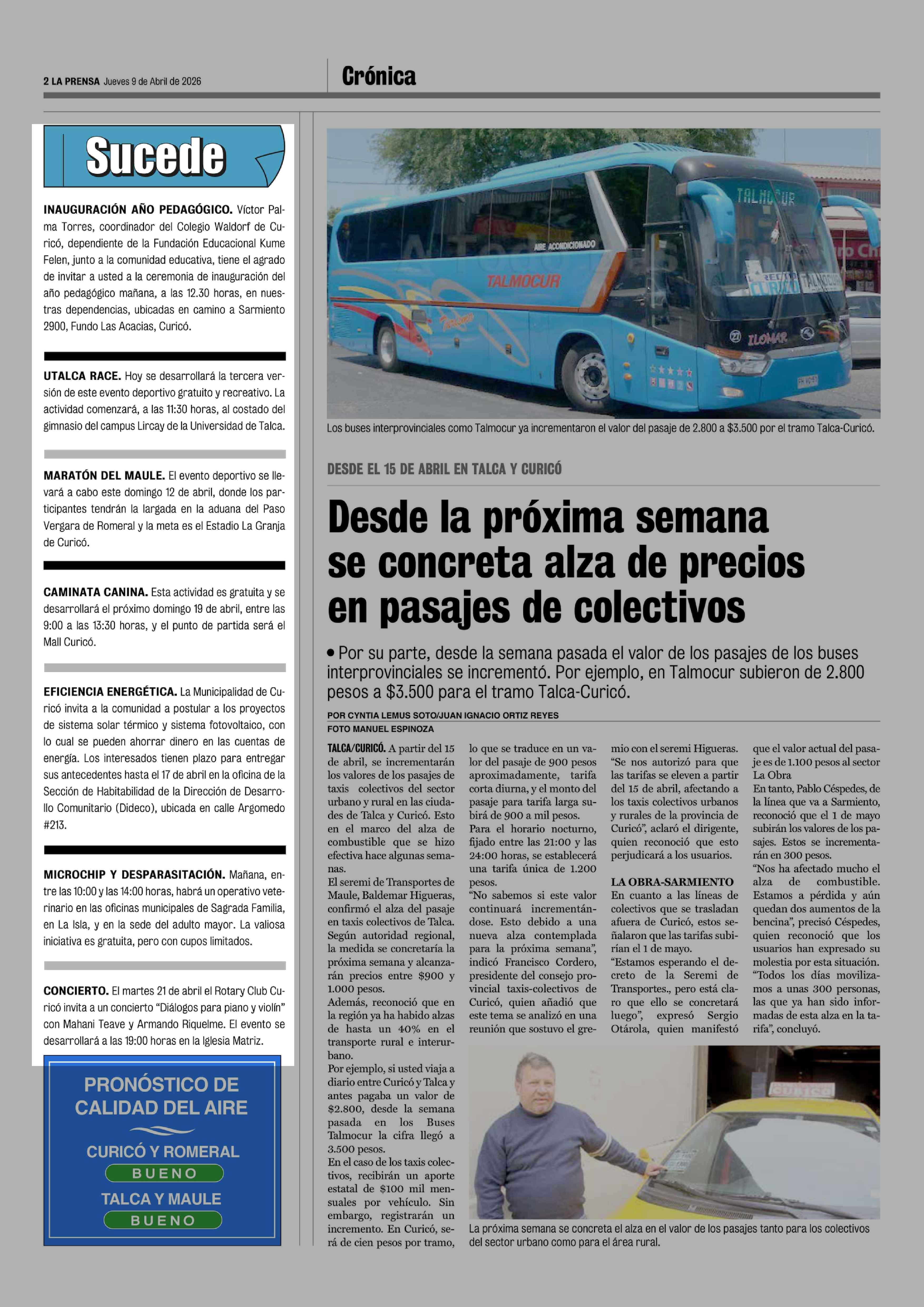 Fecha: 09-04-2026 Sector: Noticia general Región: Región del Maule