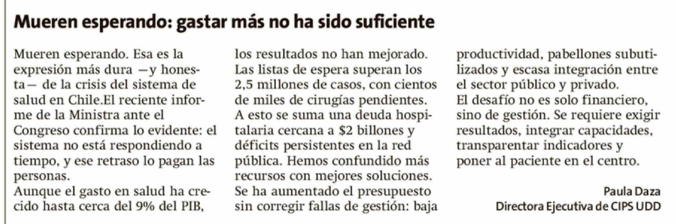 Título: Cartas: Mueren esperando: gastar más no ha sido suficiente