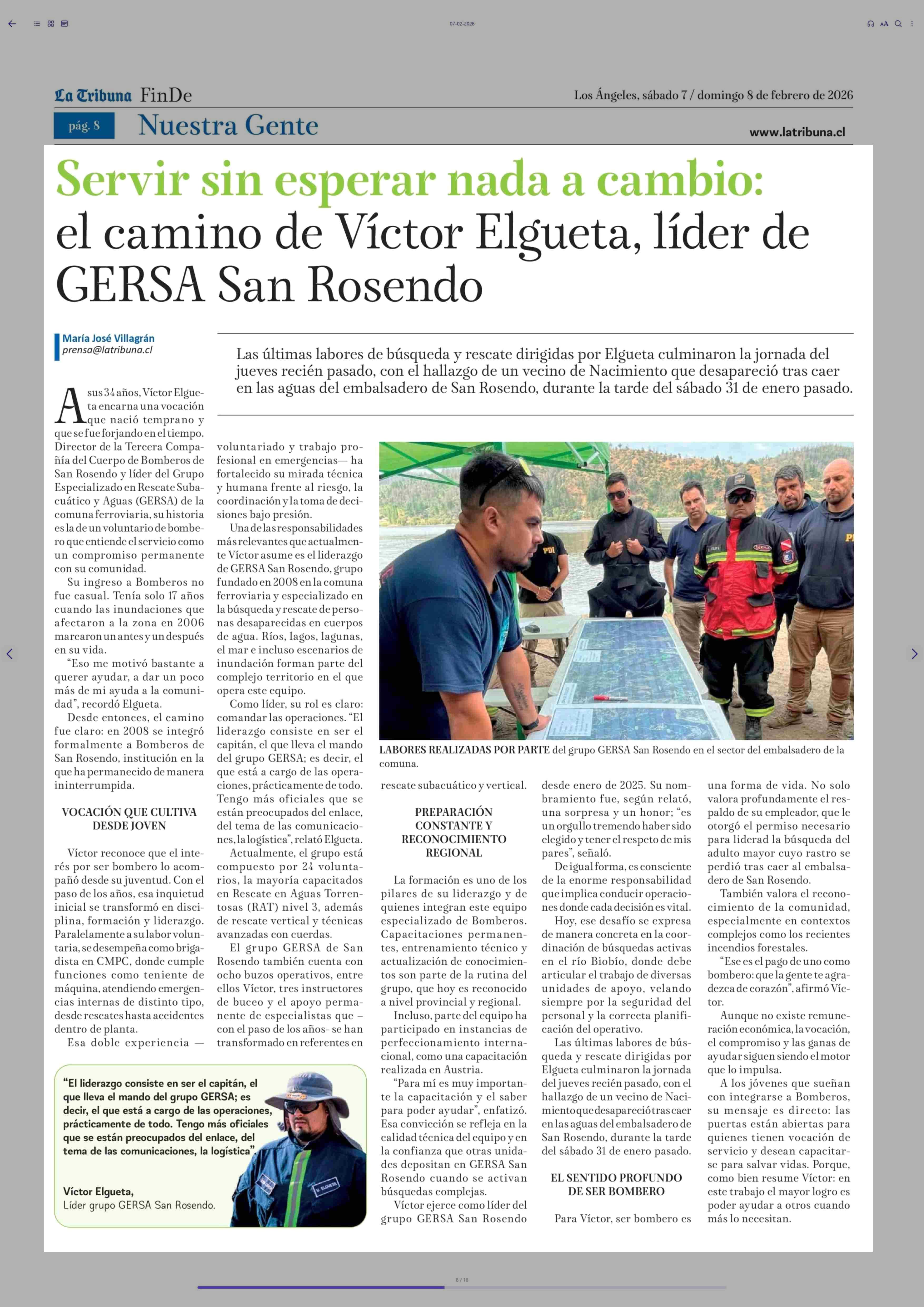 Servir sin esperar nada a cambio: el camino de Víctor Elgueta, líder de GERSA San Rosendo 07-02-2026 La Tribuna |