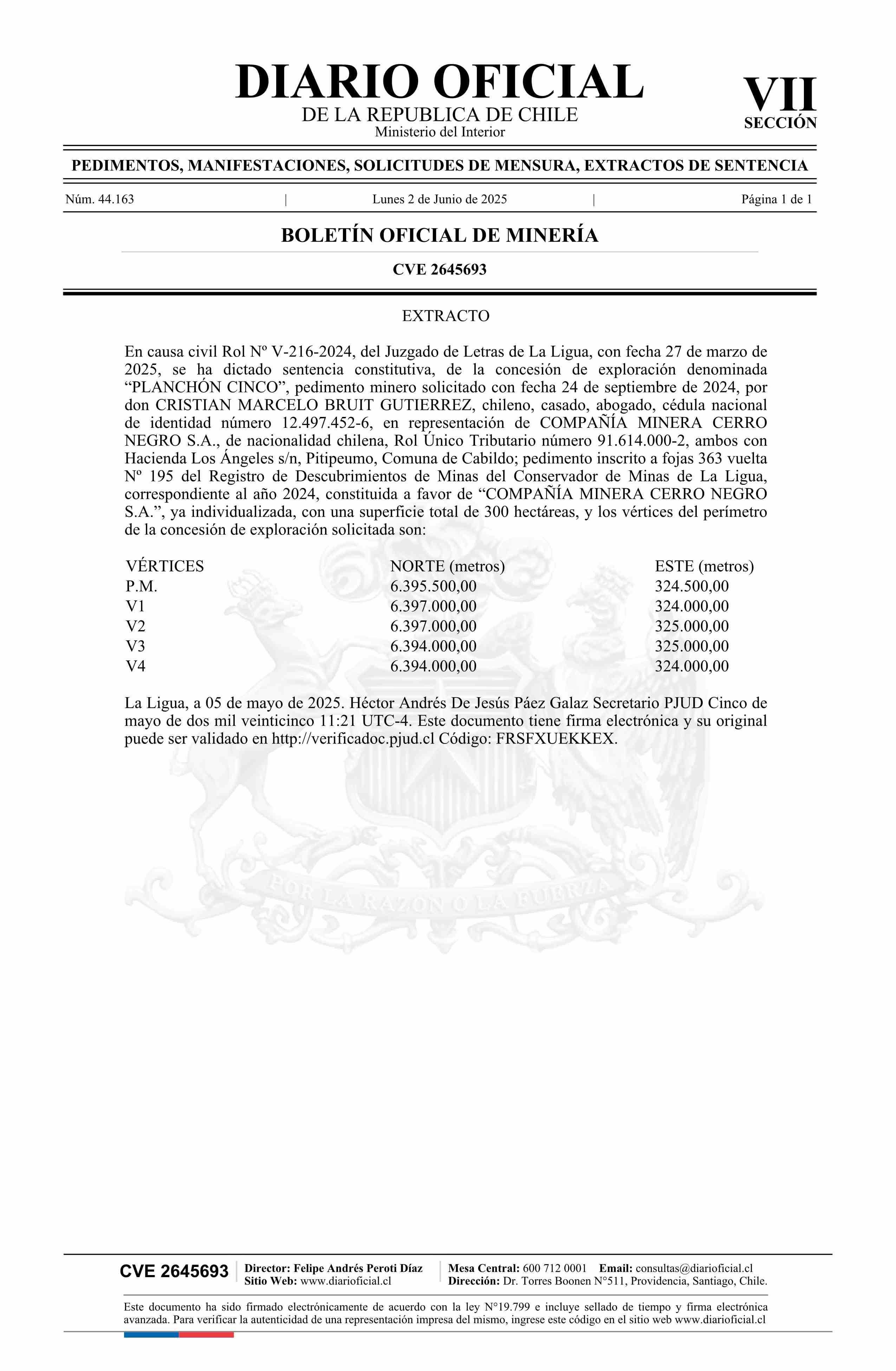 PLANCHÓN CINCO / Compañía Minera Cerro Negro S.A.