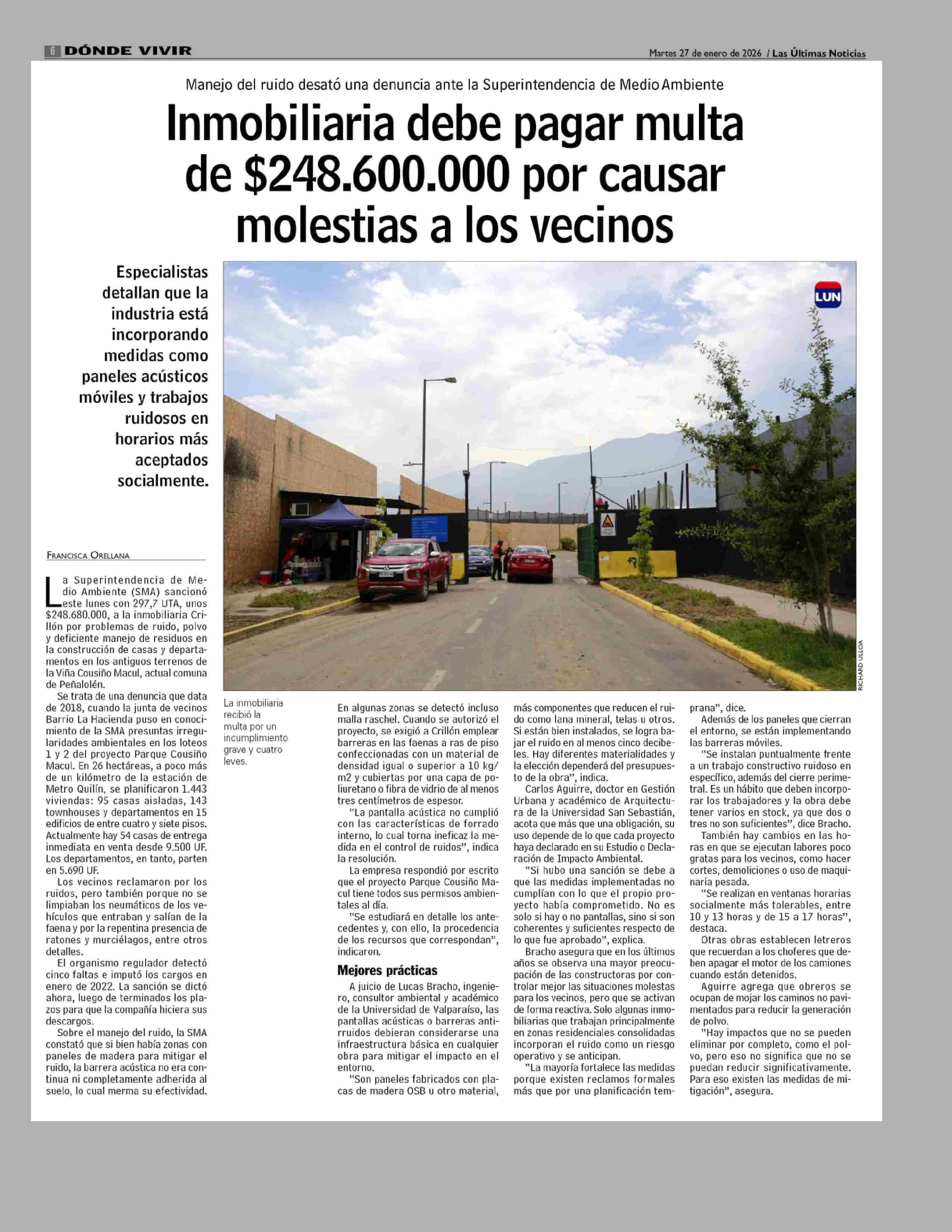 Título: Inmobiliaria debe pagar multa de $248.600.000 por causar molestias a los vecinos
