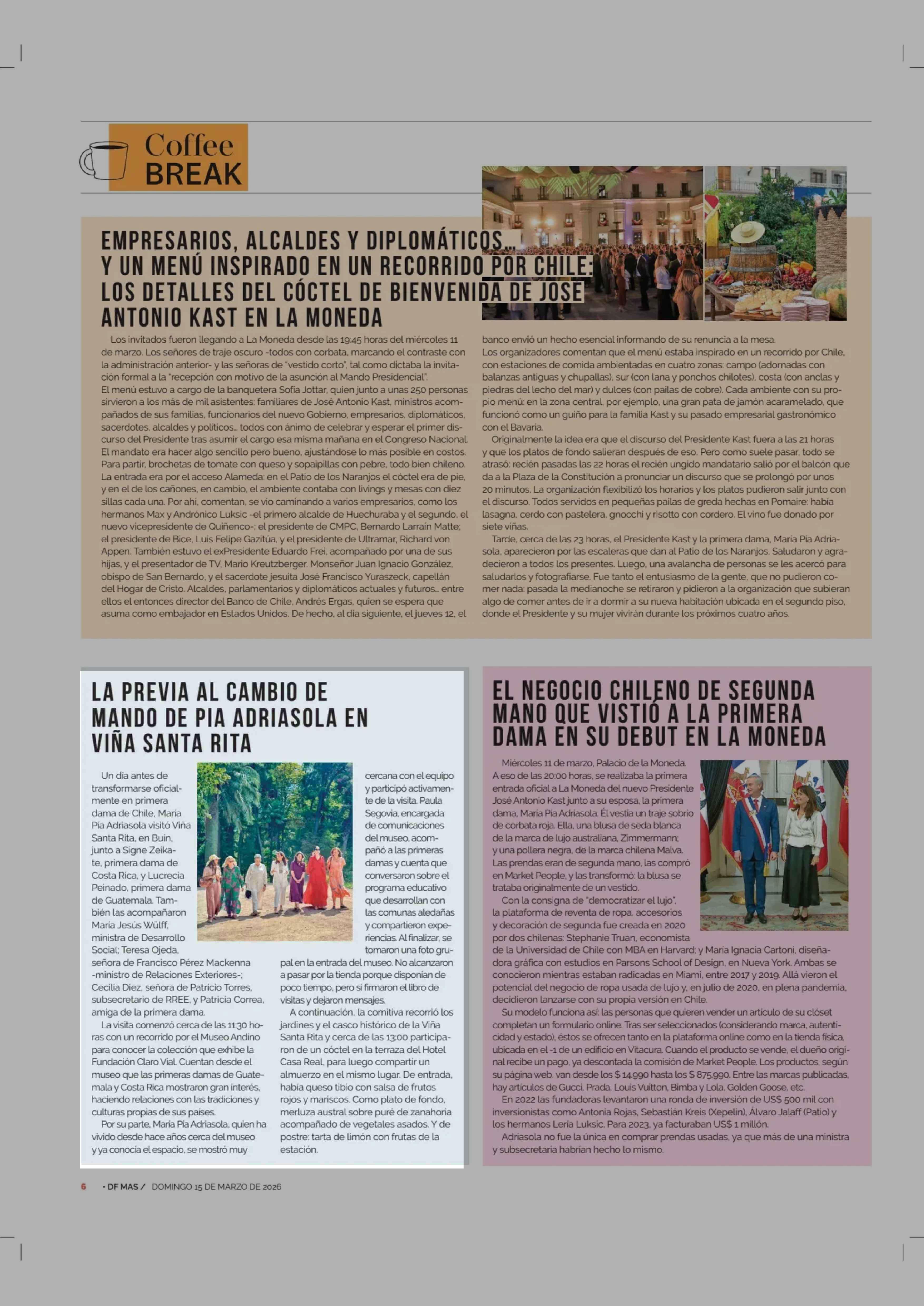LA PREVIA AL CAMBIO DE MANDO DE PIA ADRIASOLA EN VIÑA SANTA RITA 15-03-2026 Diario Financiero |