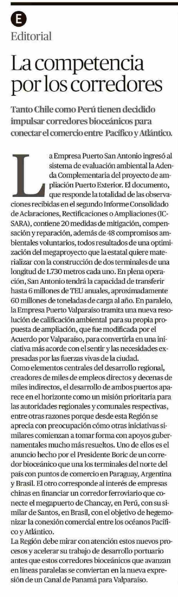 Editorial: La competencia por los corredores 07-06-2025 El Mercurio de Valparaíso |