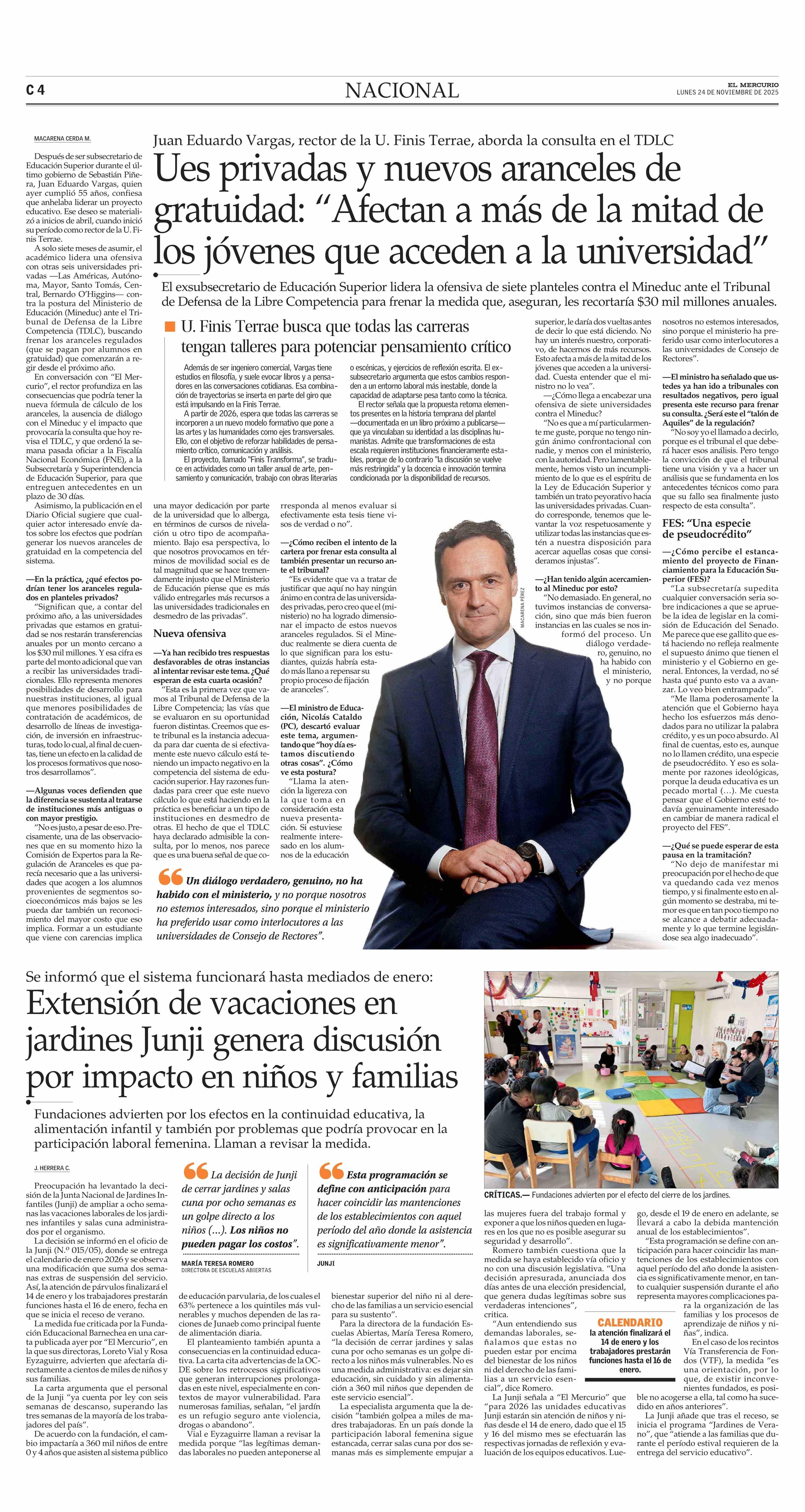 Ues privadas y nuevos aranceles de gratuidad: “Afectan a más de la mitad de los jóvenes que acceden a la universidad” 24-11-2025 El Mercurio |