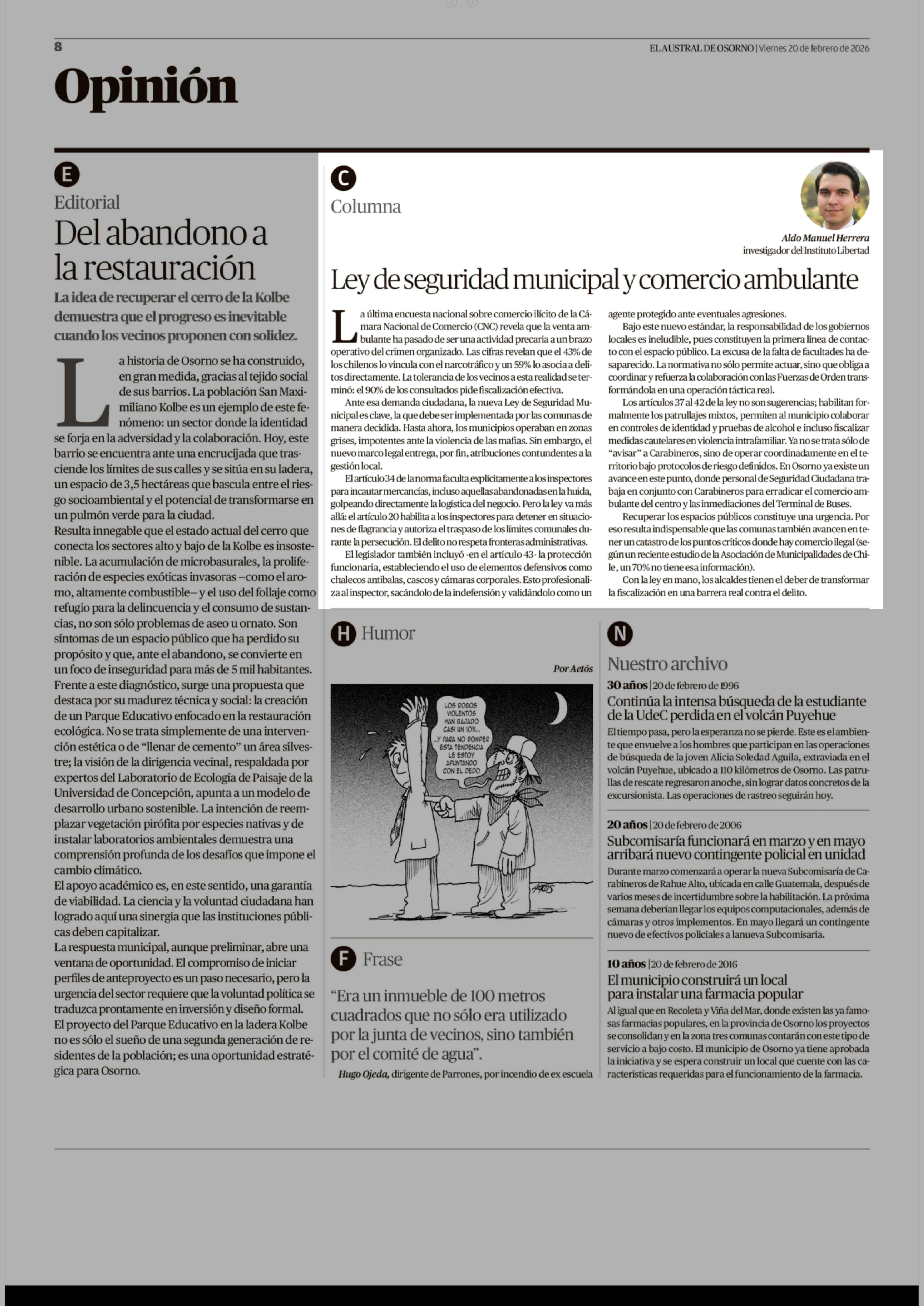 Fecha: 20-02-2026 Sector: Columnas de Opinión Región: Región de Los Lagos
