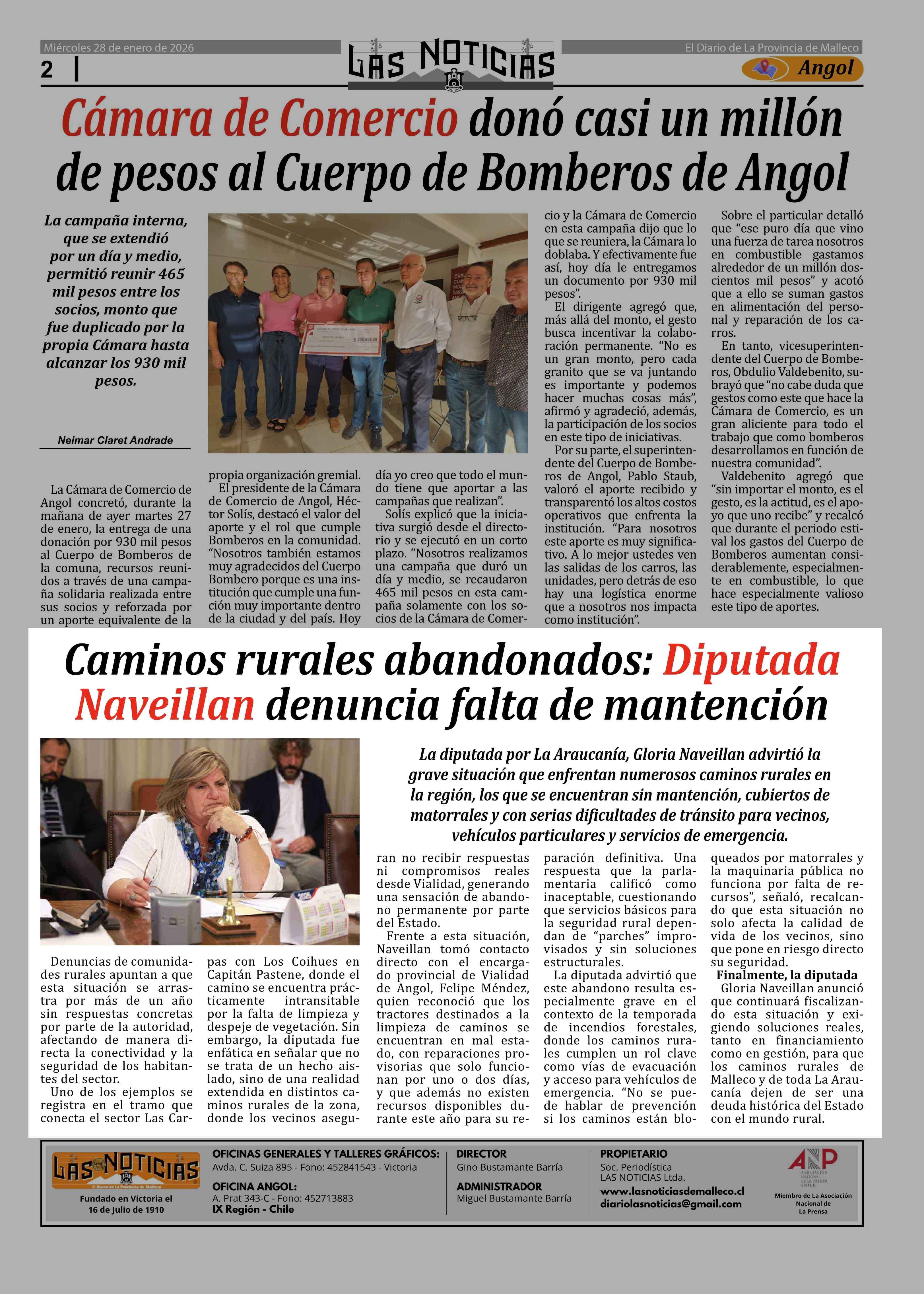 Caminos rurales abandonados: Diputada Naveillan denuncia falta de mantención 28-01-2026 Las Noticias |