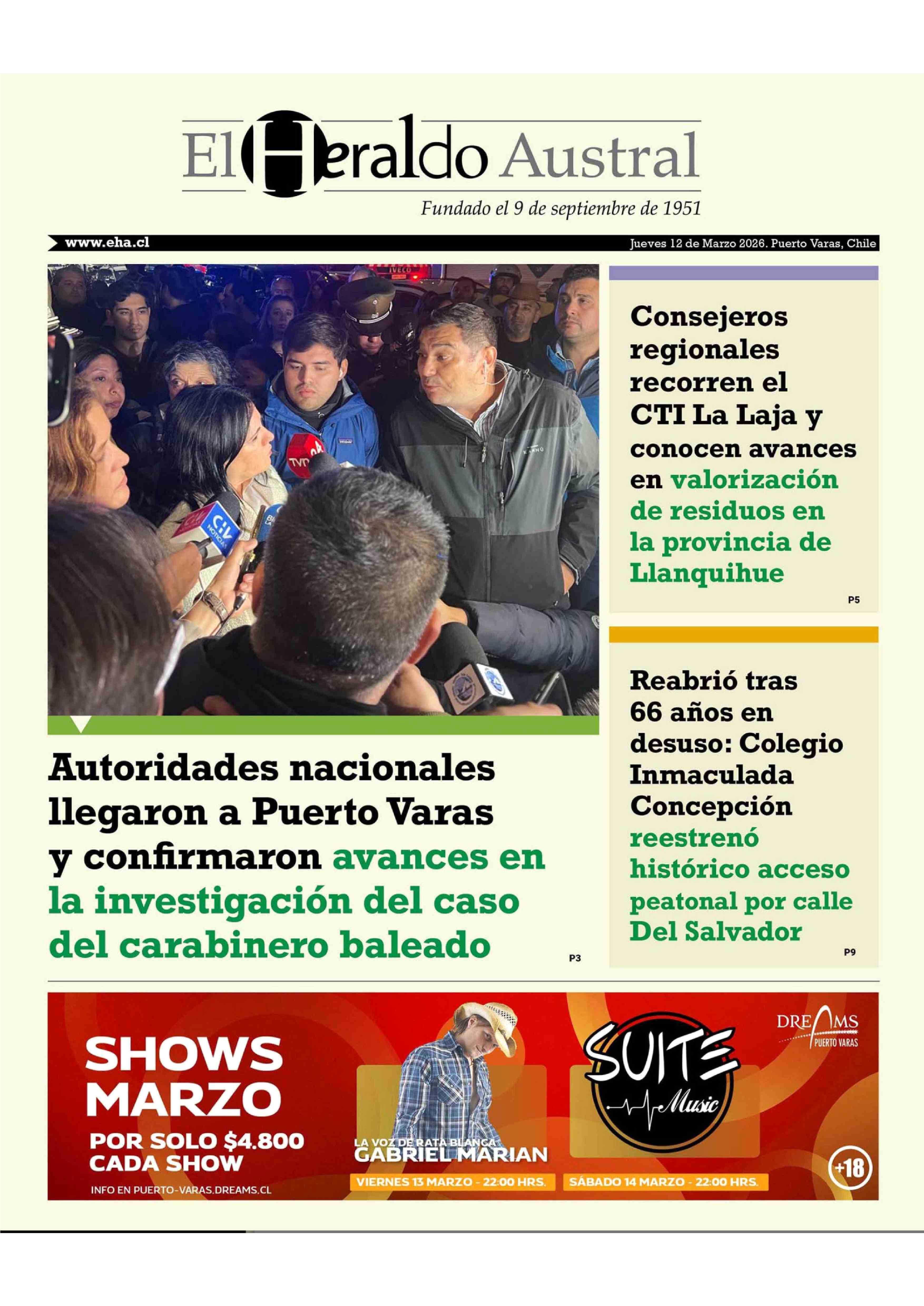 | Fecha: | 12-03-2026 | Sector: | Portada | Región: | Región de Los Lagos |