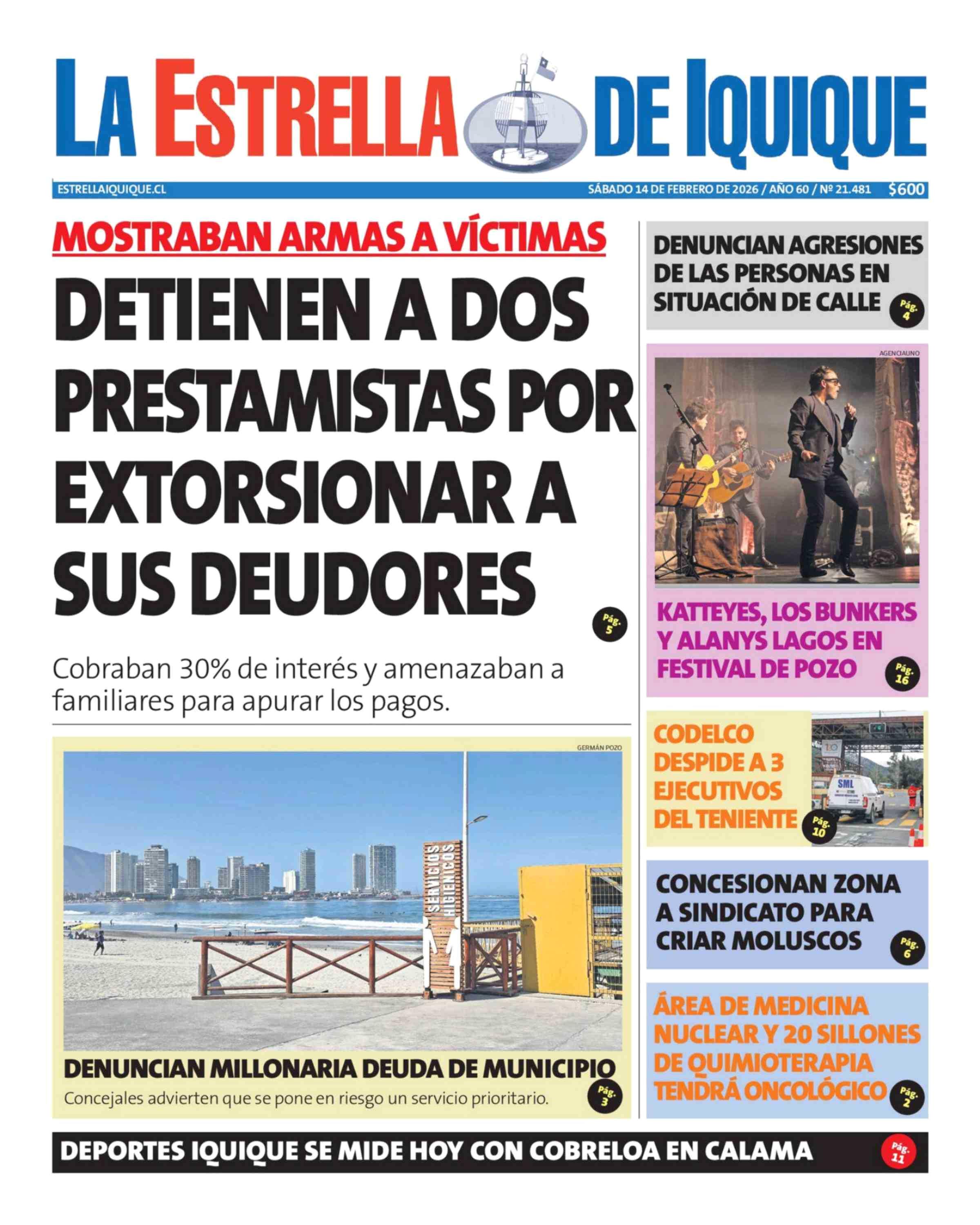 | Fecha: | 14-02-2026 | Sector: | Portada | Región: | Región de Tarapacá |