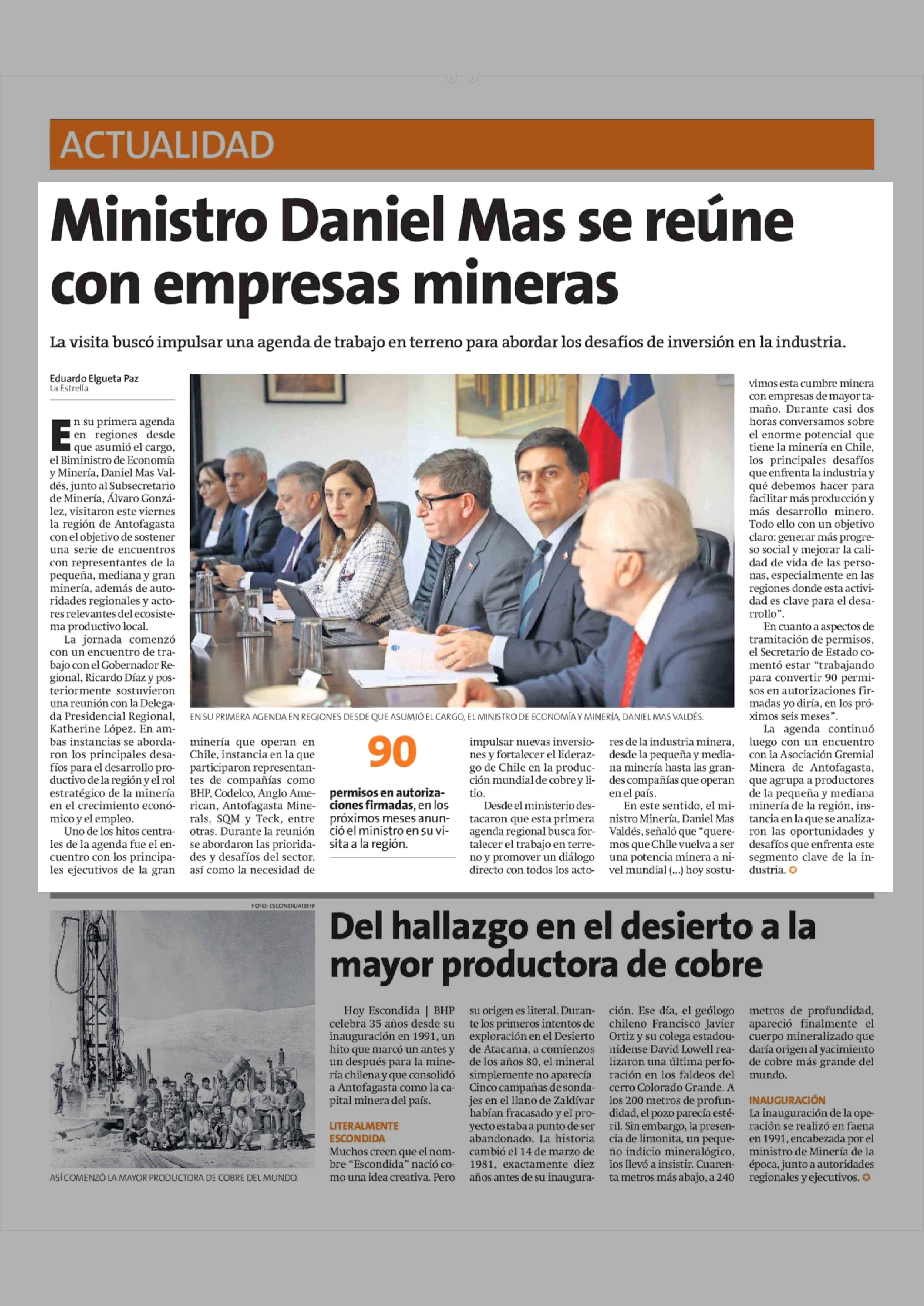 Ministro Daniel Mas se reúne con empresas mineras 14-03-2026 La Estrella de Antofagasta |